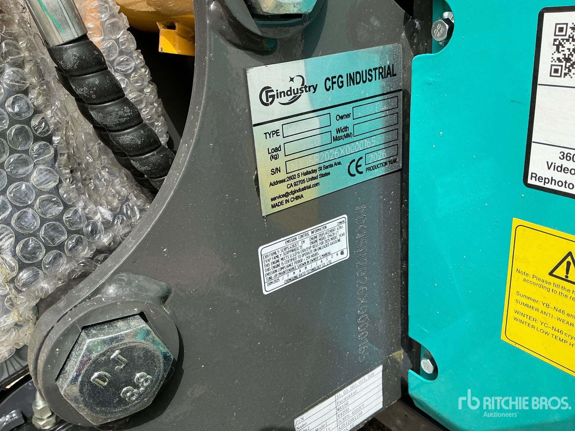 2025 US EPA Label, 2 ft 8 in Stick, Auxiliary Hydraulic Plumbing, Backfill Blade, 7 in Rubber Tracks, 15 in Digging Bucket, Manual Thumb