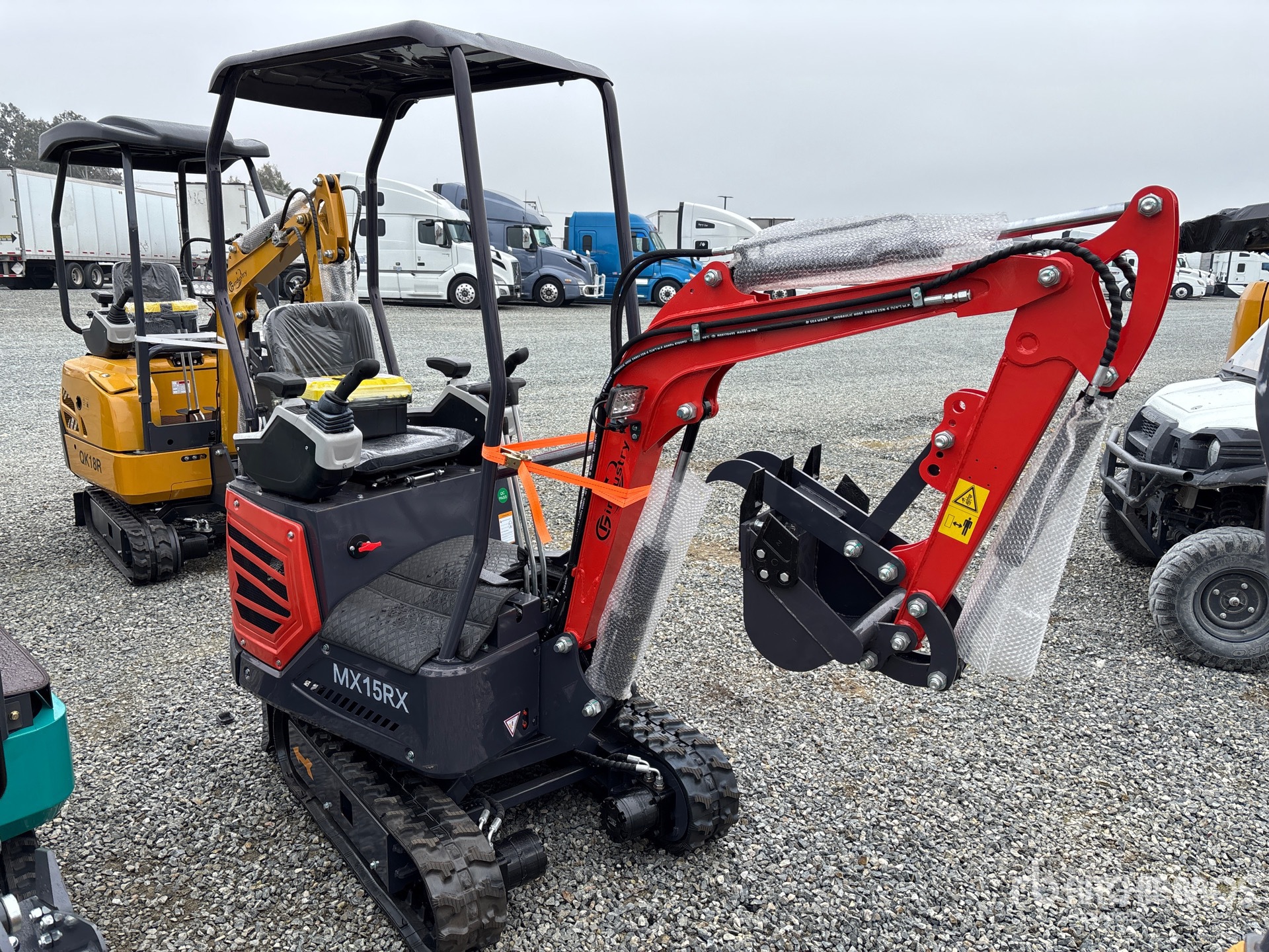 US EPA Label, 2 ft 7 in Stick, Backfill Blade, 7 in Rubber Tracks, 16 in Digging Bucket, Manual Thumb