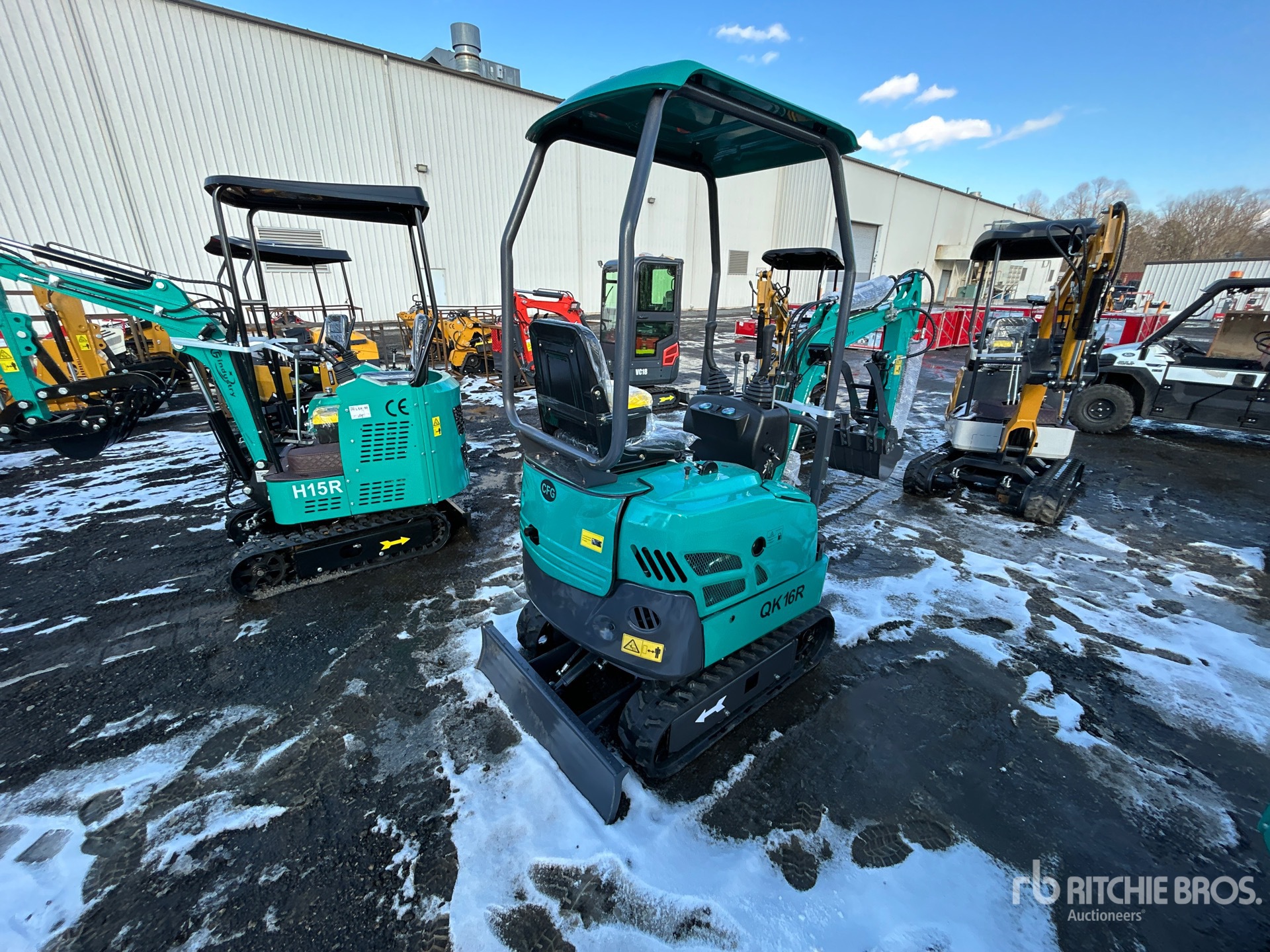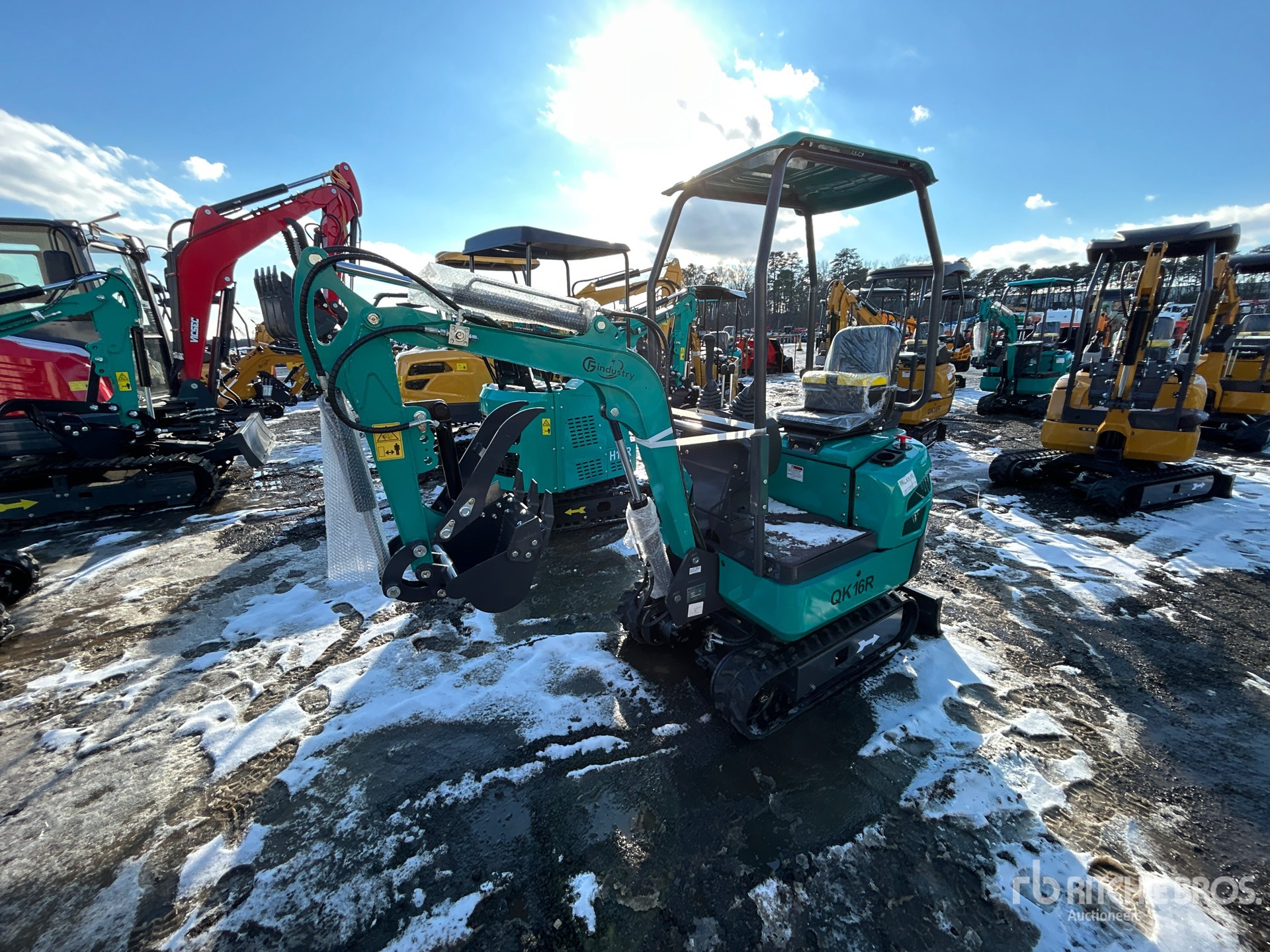 2025 US EPA Label, 2 ft 8 in Stick, Backfill Blade, 7 in Rubber Tracks, Manual Quick Coupler, 16 in Digging Bucket, Hydraulic Thumb