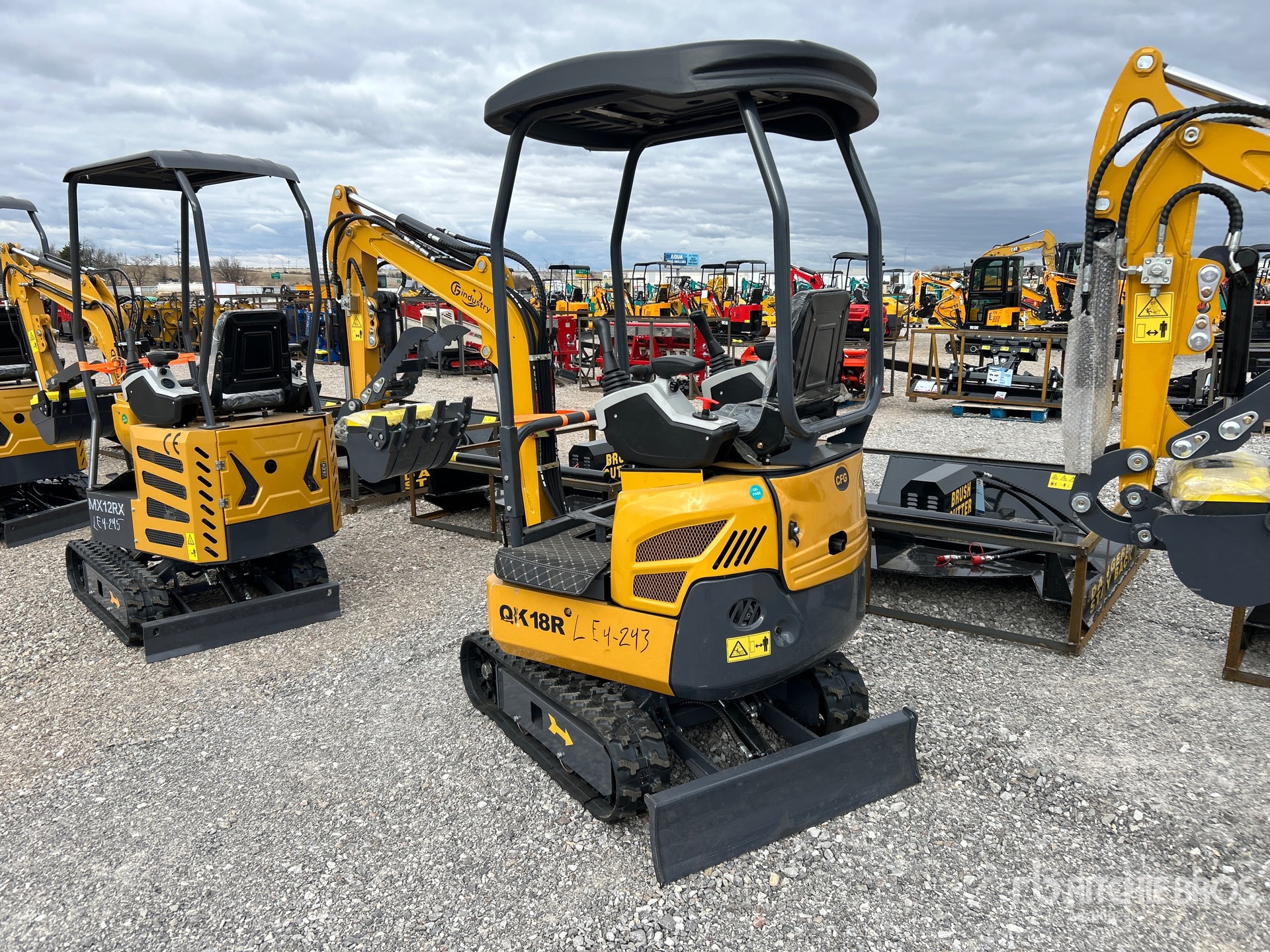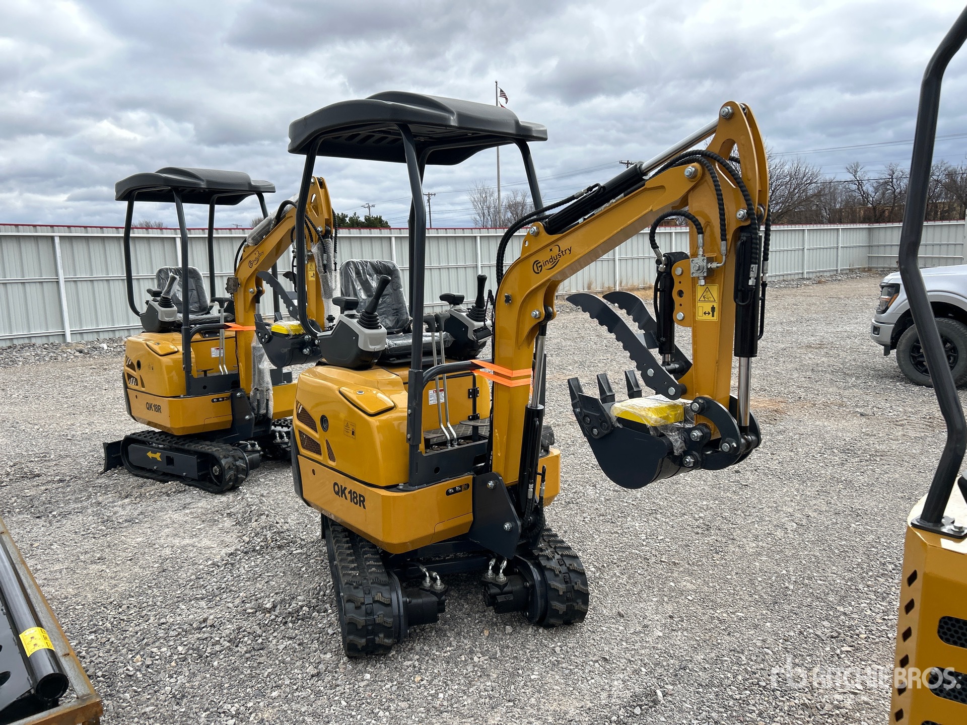 2025 US EPA Label, 2 ft 7 in Stick, Backfill Blade, 7 in Rubber Tracks, Manual Quick Coupler, 16 in Digging Bucket, Hydraulic Thumb