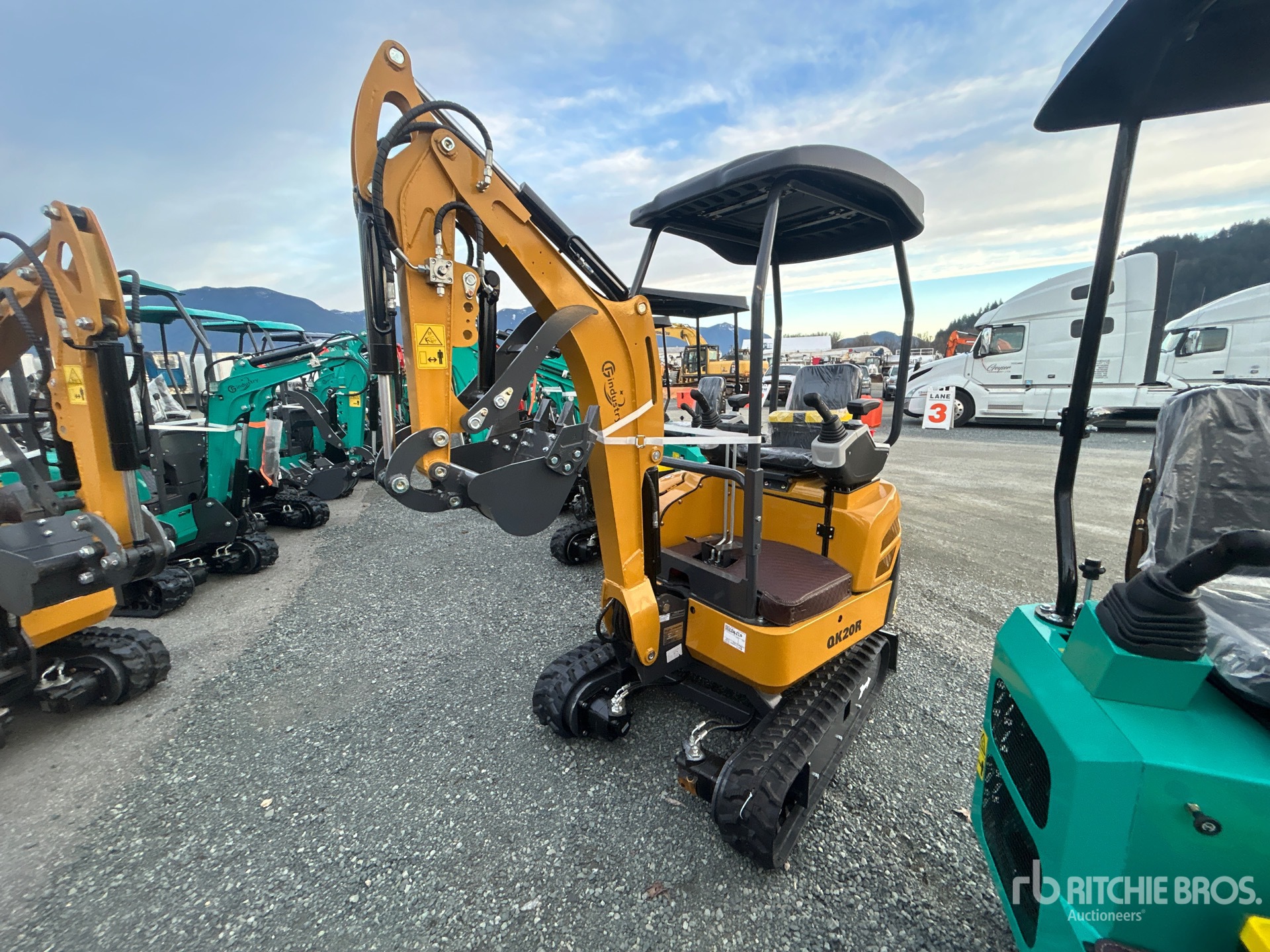 2025 US EPA Label, 2 ft 9 in Stick, Backfill Blade, 7 in Rubber Tracks, 16 in Digging Bucket, Hydraulic Thumb
