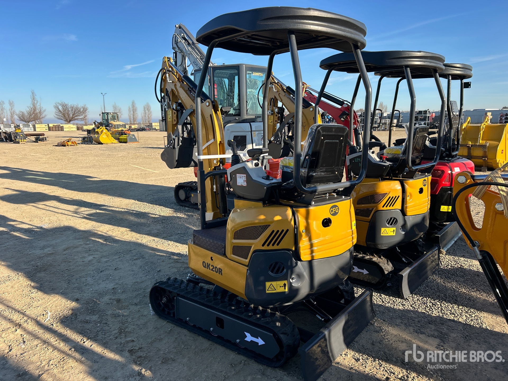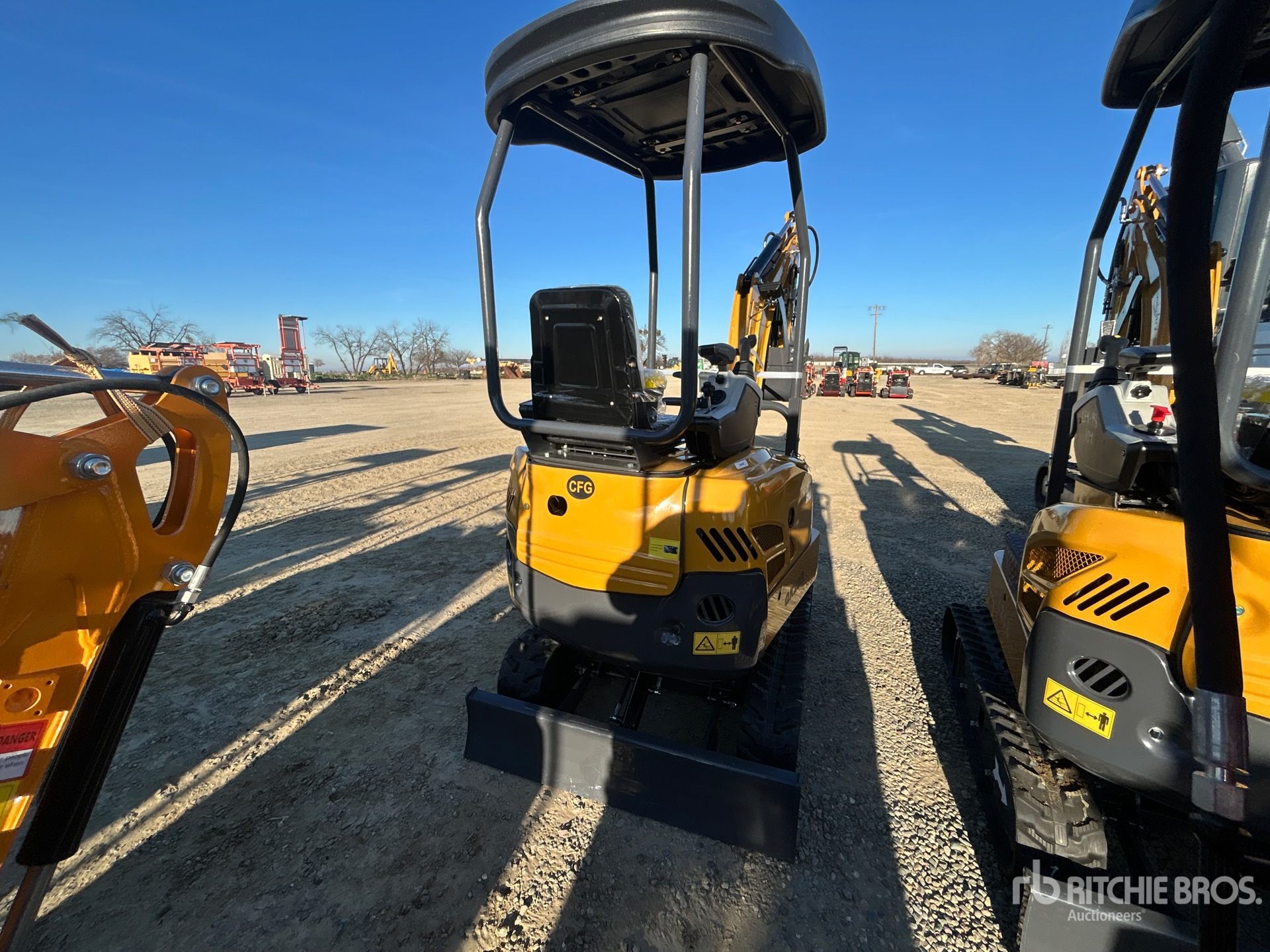2025 US EPA Label, 2 ft 7 in Stick, Backfill Blade, 7 in Rubber Tracks, Manual Quick Coupler, 16 in Digging Bucket, Hydraulic Thumb