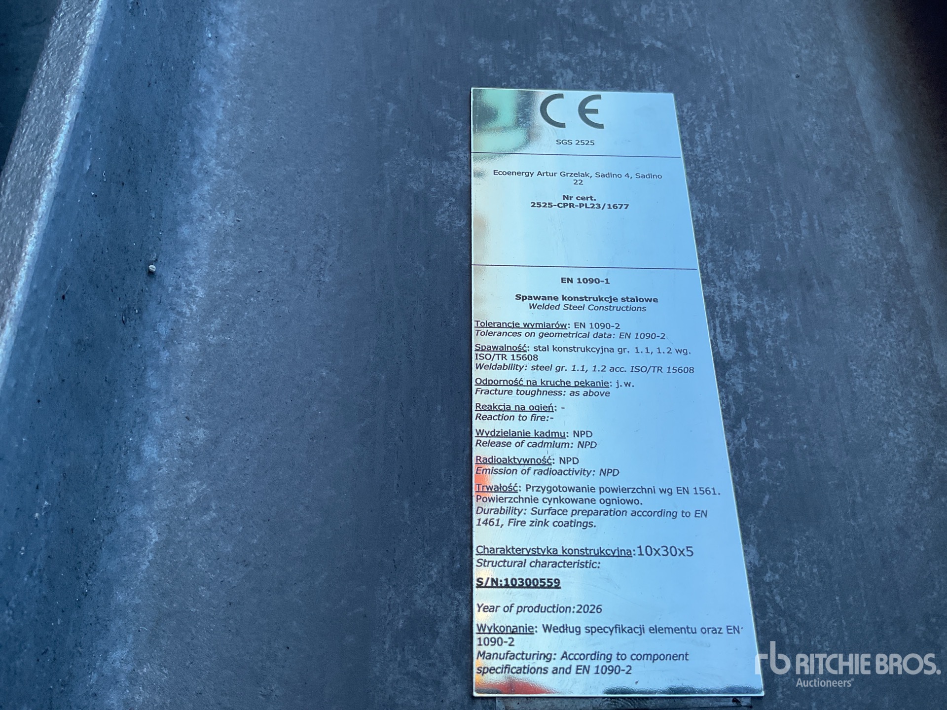 A qualified Ritchie Bros. employee collected detailed equipment information and performed functional tests on the key components of this asset. You, or a proxy, may also inspect any items on site prior to bidding on auction day.