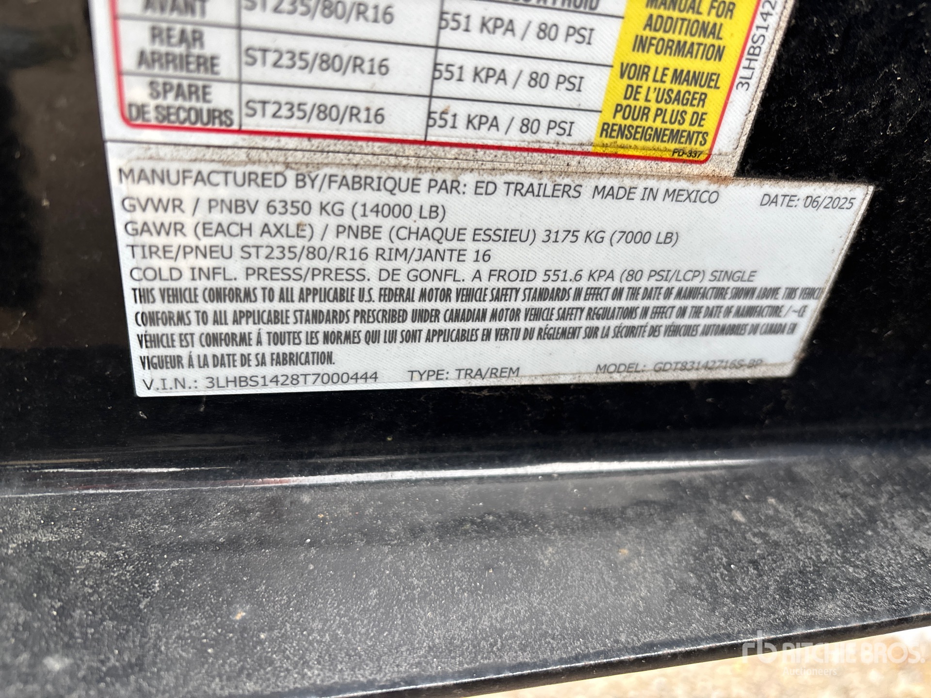 The detailed equipment information is limited in scope, and Ritchie Bros. Auctioneers has not inspected any aspects or components of the equipment other than those expressly set forth herein. Unless expressly stated, we make no representations or warranties, express or implied, concerning the equipment or its components, including without limitation any representations or warranties concerning functionality, conformity or compliance with any safety standard or requirement of any applicable authority or regulatory body, fitness for any particular purpose, or merchantability. You are strongly advised to perform your own detailed inspection of the equipment prior to bidding.