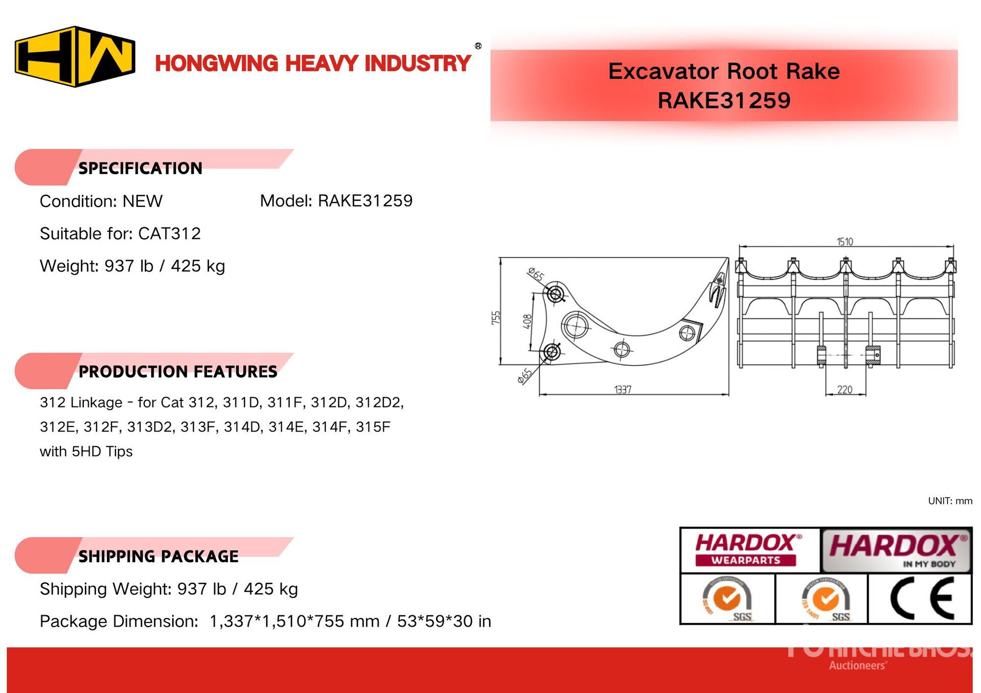 The detailed equipment information is limited in scope, and Ritchie Bros. Auctioneers has not inspected any aspects or components of the equipment other than those expressly set forth herein. Unless expressly stated, we make no representations or warranties, express or implied, concerning the equipment or its components, including without limitation any representations or warranties concerning functionality, conformity or compliance with any safety standard or requirement of any applicable authority or regulatory body, fitness for any particular purpose, or merchantability. You are strongly advised to perform your own detailed inspection of the equipment prior to bidding.