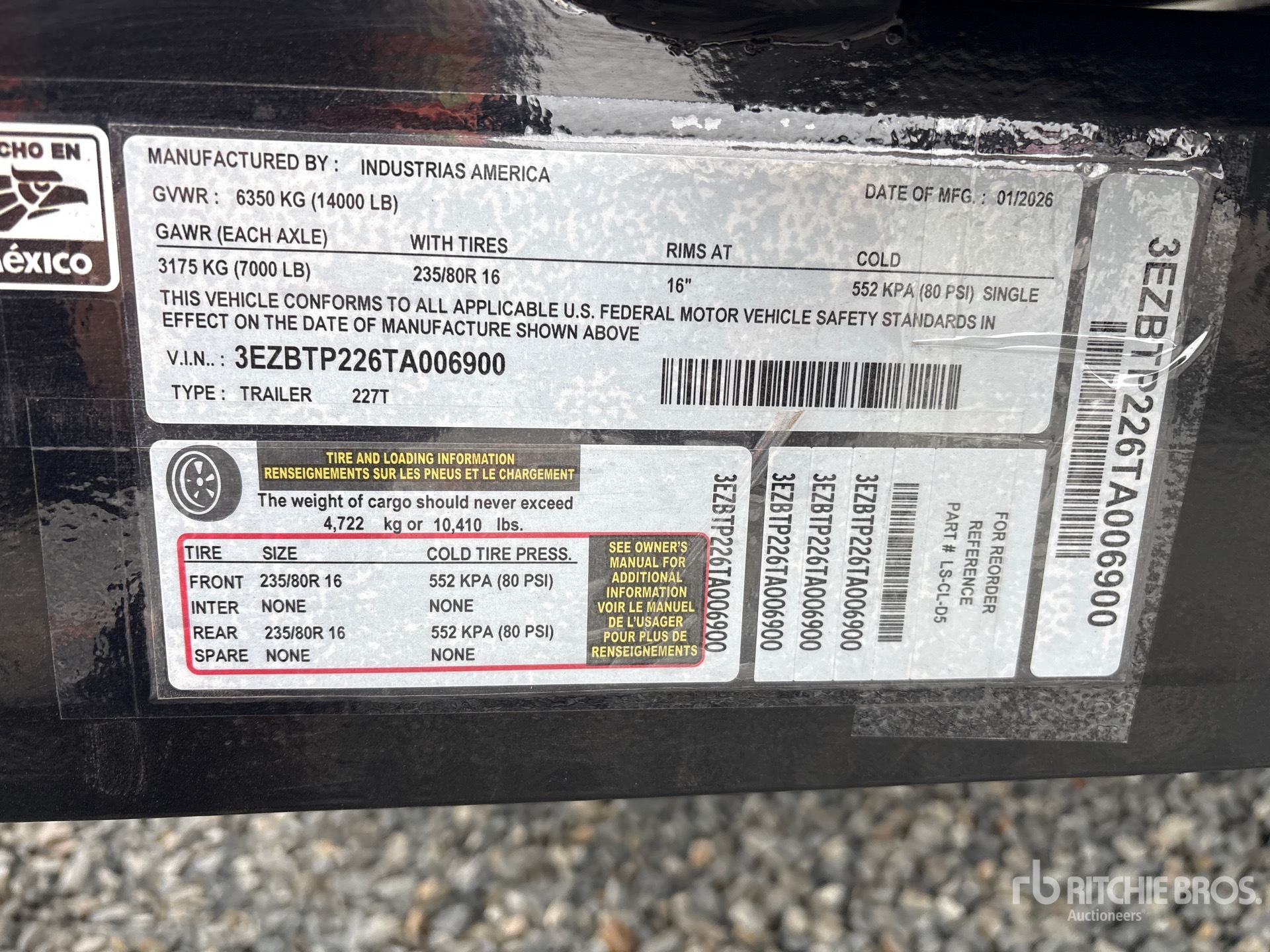 The detailed equipment information is limited in scope, and Ritchie Bros. Auctioneers has not inspected any aspects or components of the equipment other than those expressly set forth herein. Unless expressly stated, we make no representations or warranties, express or implied, concerning the equipment or its components, including without limitation any representations or warranties concerning functionality, conformity or compliance with any safety standard or requirement of any applicable authority or regulatory body, fitness for any particular purpose, or merchantability. You are strongly advised to perform your own detailed inspection of the equipment prior to bidding.