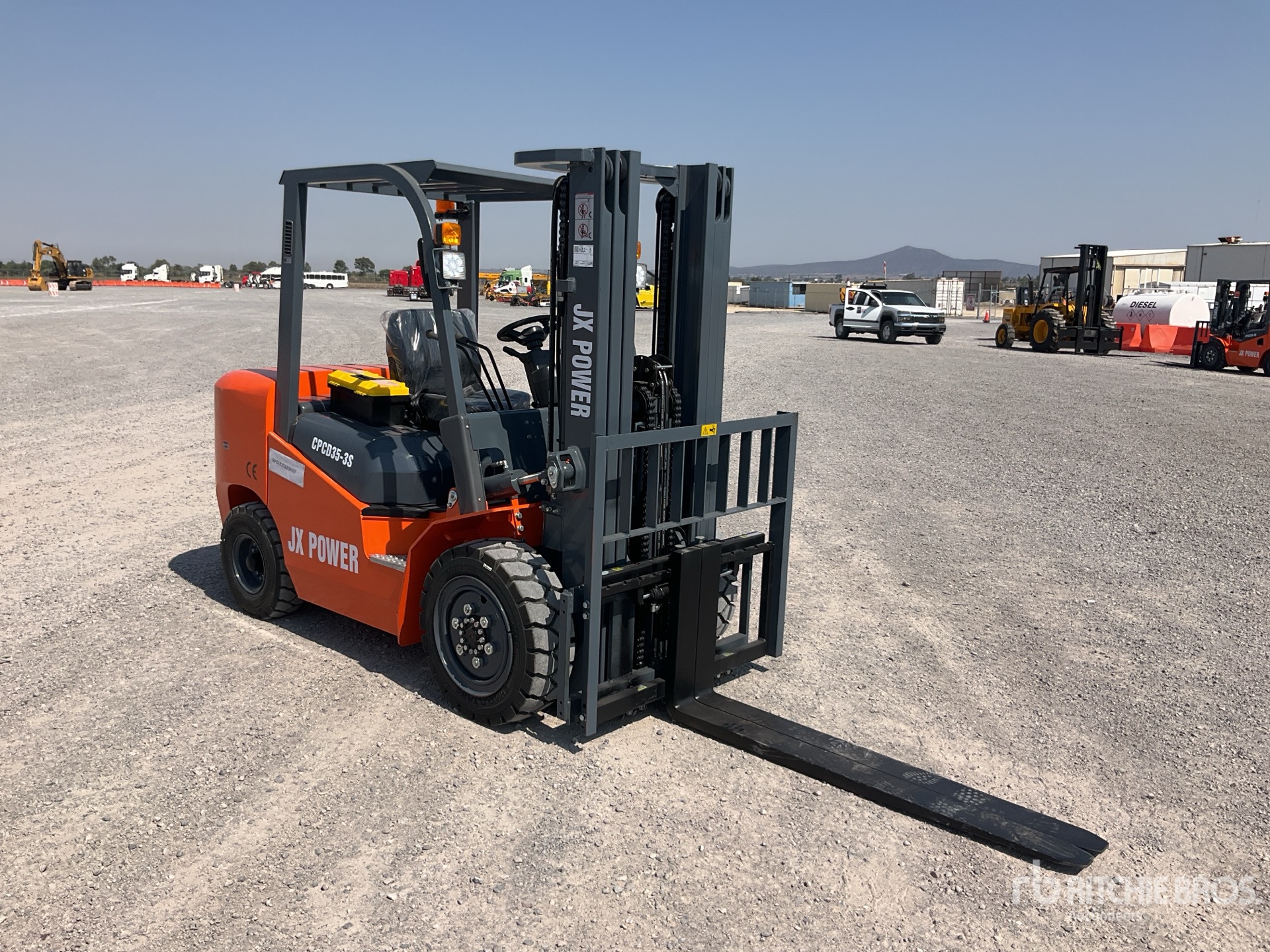 3 Stage Mast, Full Free Lift, 176 in Max Lift Height, 83 in Lowered Mast Height, 60 in Forks, Side Shift, 4 Cylinder Diesel Engine, / Mastil 83 in 3 Etapas, Elevacion Libre Completa, Elevacion Max 176 in, Horquillas 60 in, Desplazamiento Lateral, Motor 4 Cilindros Diesel