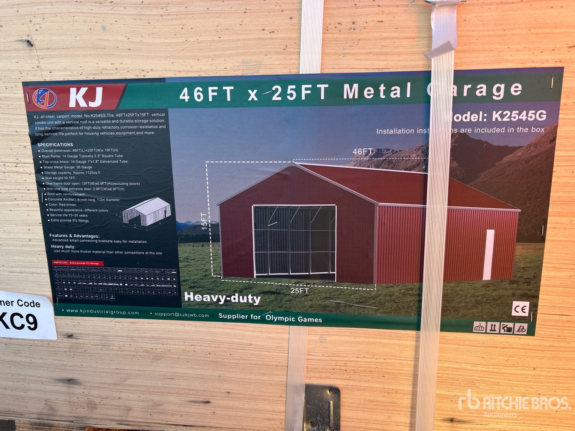 2026 KJ K2545G 25 ft x 46 ft Metal Garage Storage Building (Unused)
