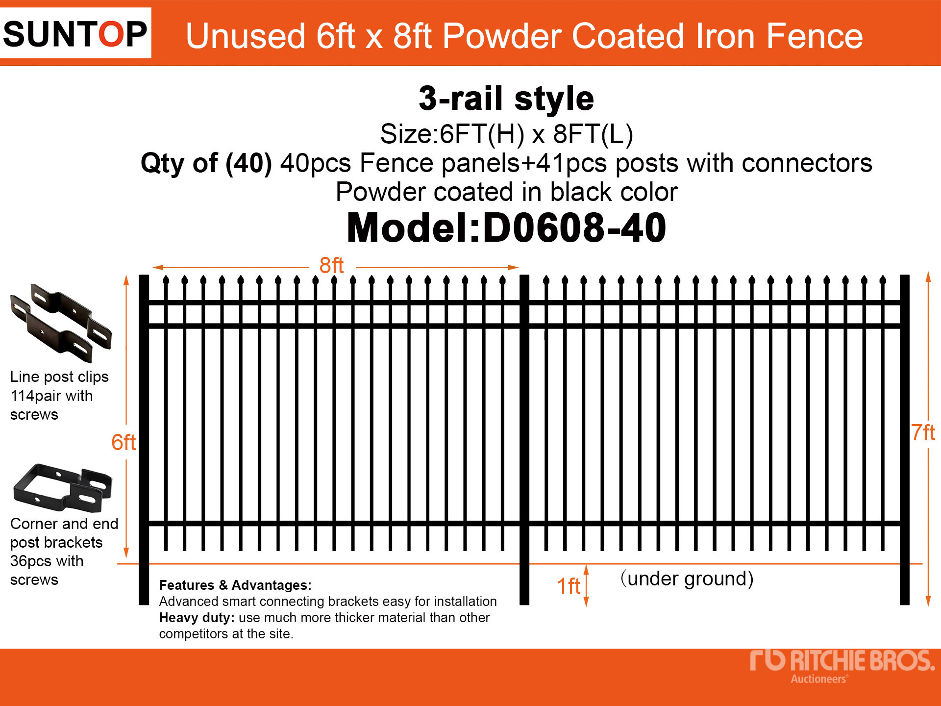 Quantity of (40) 2026 SUNTOP D0608-40 6 ft x 8 ft Powder Coated Fencing (Unused)