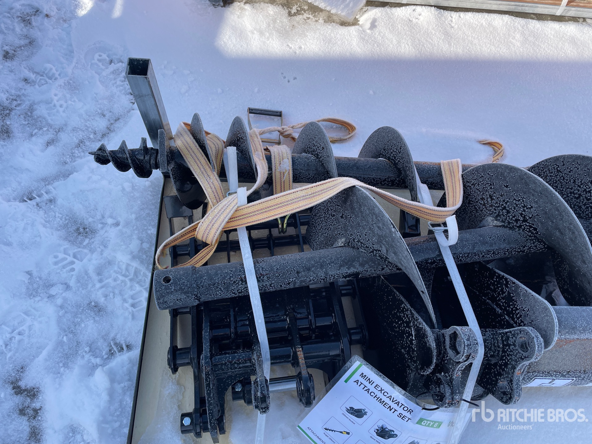 (1) Rake, (1) Ripper, (1) Grapple, (1) Auger w/ 8 in & 12 in Auger Bits, (1) 8 in Narrow Bucket, (1) 24 in Bucket, (1) 32 in Bucket