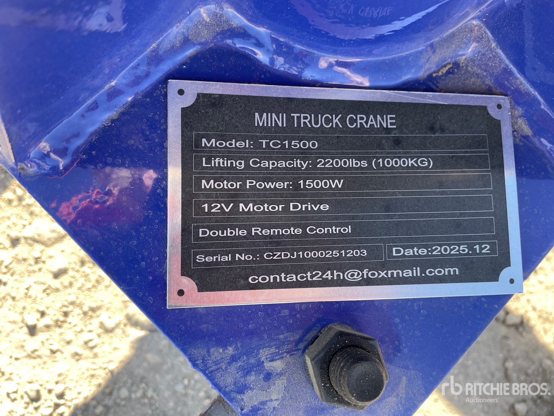 A qualified Ritchie Bros. employee collected detailed equipment information and performed functional tests on the key components of this asset. You, or a proxy, may also inspect any items on site prior to bidding on auction day.