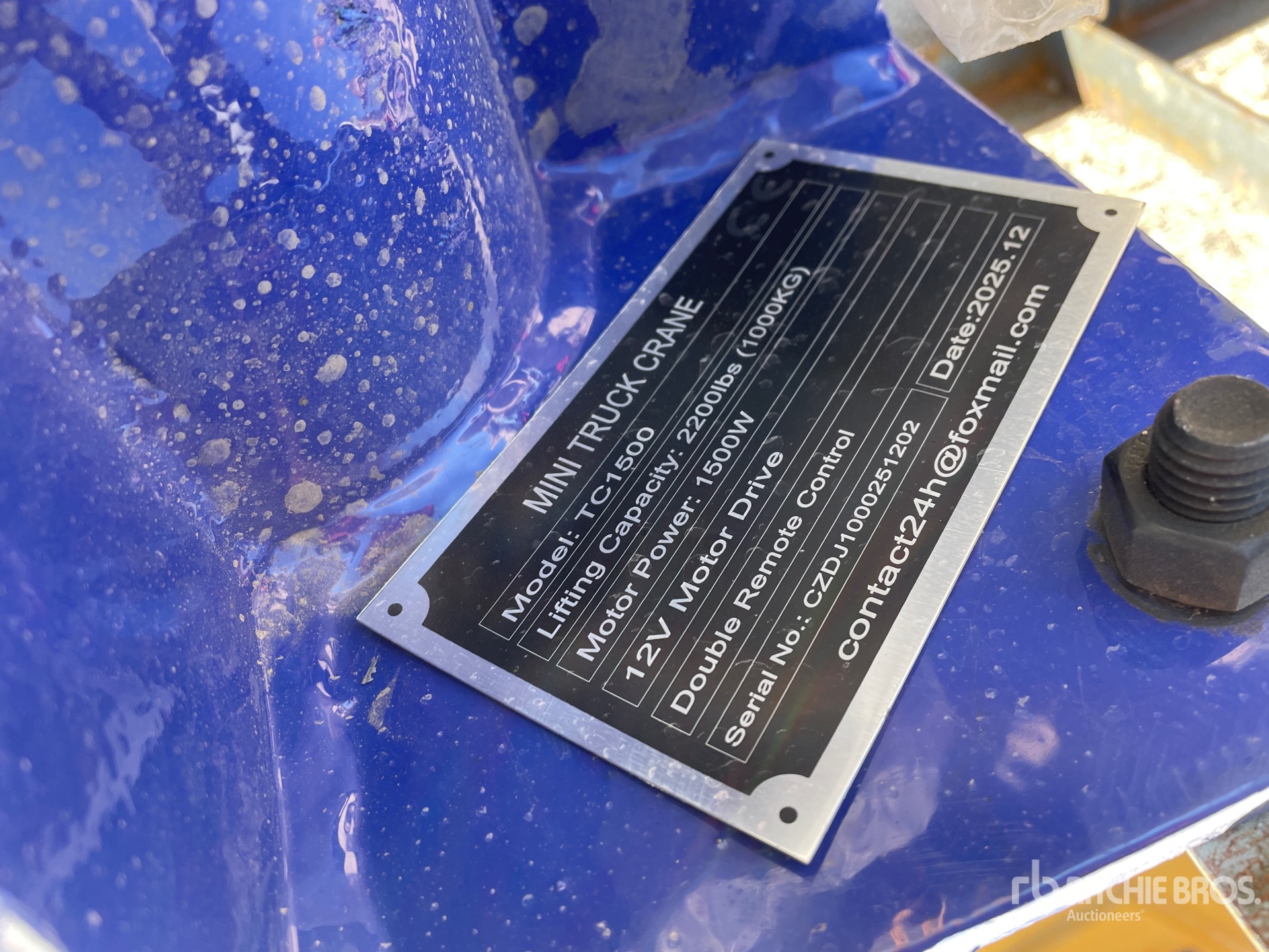 A qualified Ritchie Bros. employee collected detailed equipment information and performed functional tests on the key components of this asset. You, or a proxy, may also inspect any items on site prior to bidding on auction day.