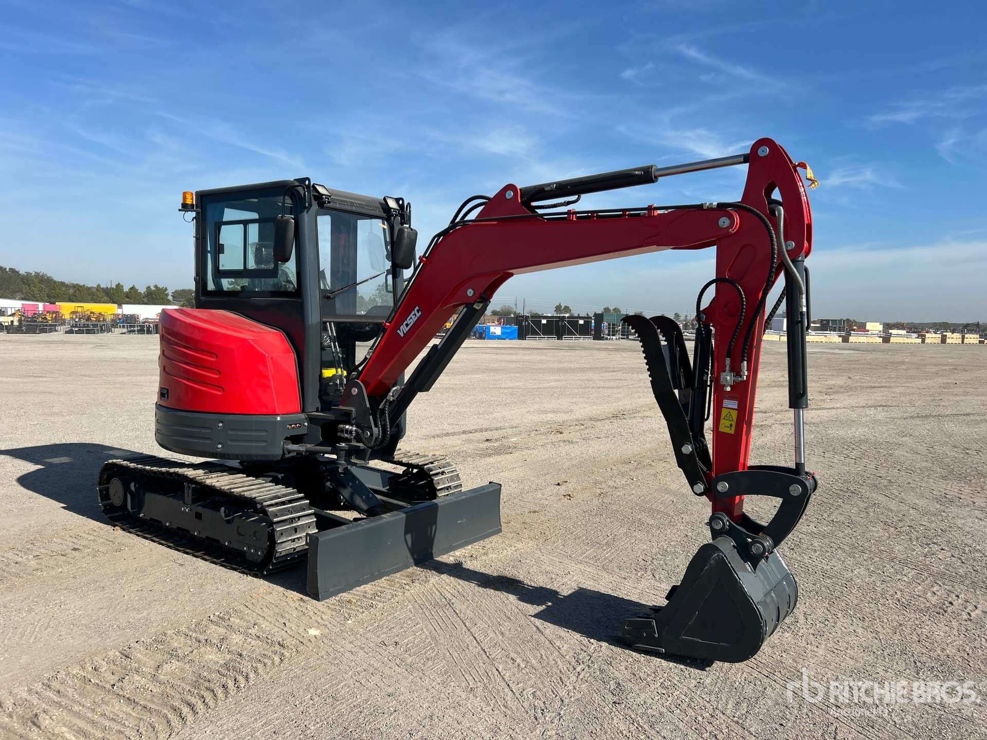 Enclosed Cab, Air Conditioner, Tier 4, 2023 US EPA Label, Swing Boom, 4 ft 6 in Stick, Backfill Blade, 11.75 in Triple Grouser Track Shoes, 22 in Digging Bucket, Hydraulic Thumb
