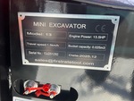 US EPA Label, 2 ft 7 in Stick, Auxiliary Hydraulic Plumbing, Backfill Blade, 7 in Rubber Tracks, 16 in Digging Bucket, Manual Thumb