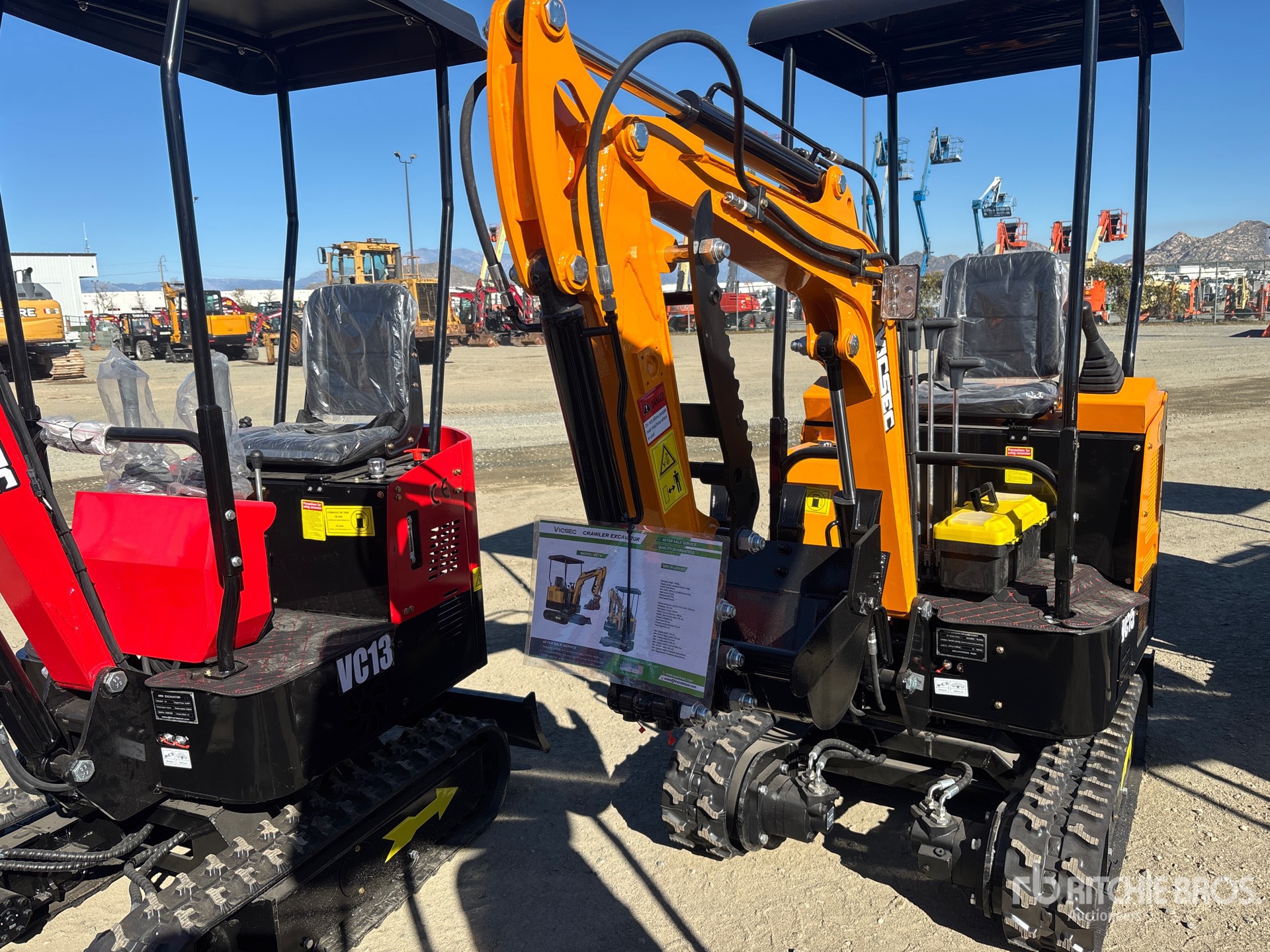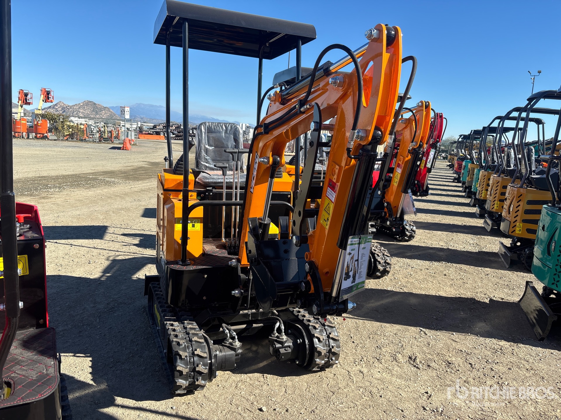 2 ft 7 in Stick, Auxiliary Hydraulic Plumbing, Backfill Blade, 7 in Rubber Tracks, 14 in Digging Bucket, Manual Thumb