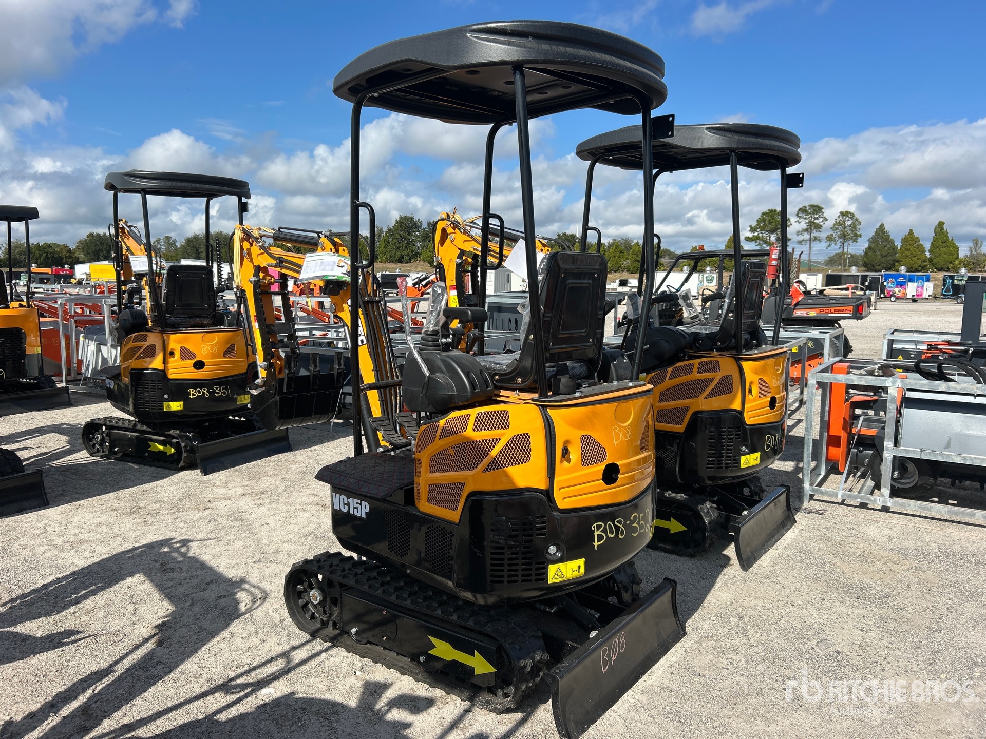 2025 US EPA Label, 2 ft 7 in Stick, Backfill Blade, 7 in Rubber Tracks, 16 in Digging Bucket, Manual Thumb