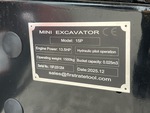 2025 US EPA Label, 2 ft 7 in Stick, Auxiliary Hydraulic Plumbing, Backfill Blade, 7 in Rubber Tracks, 16 in Digging Bucket, Manual Thumb