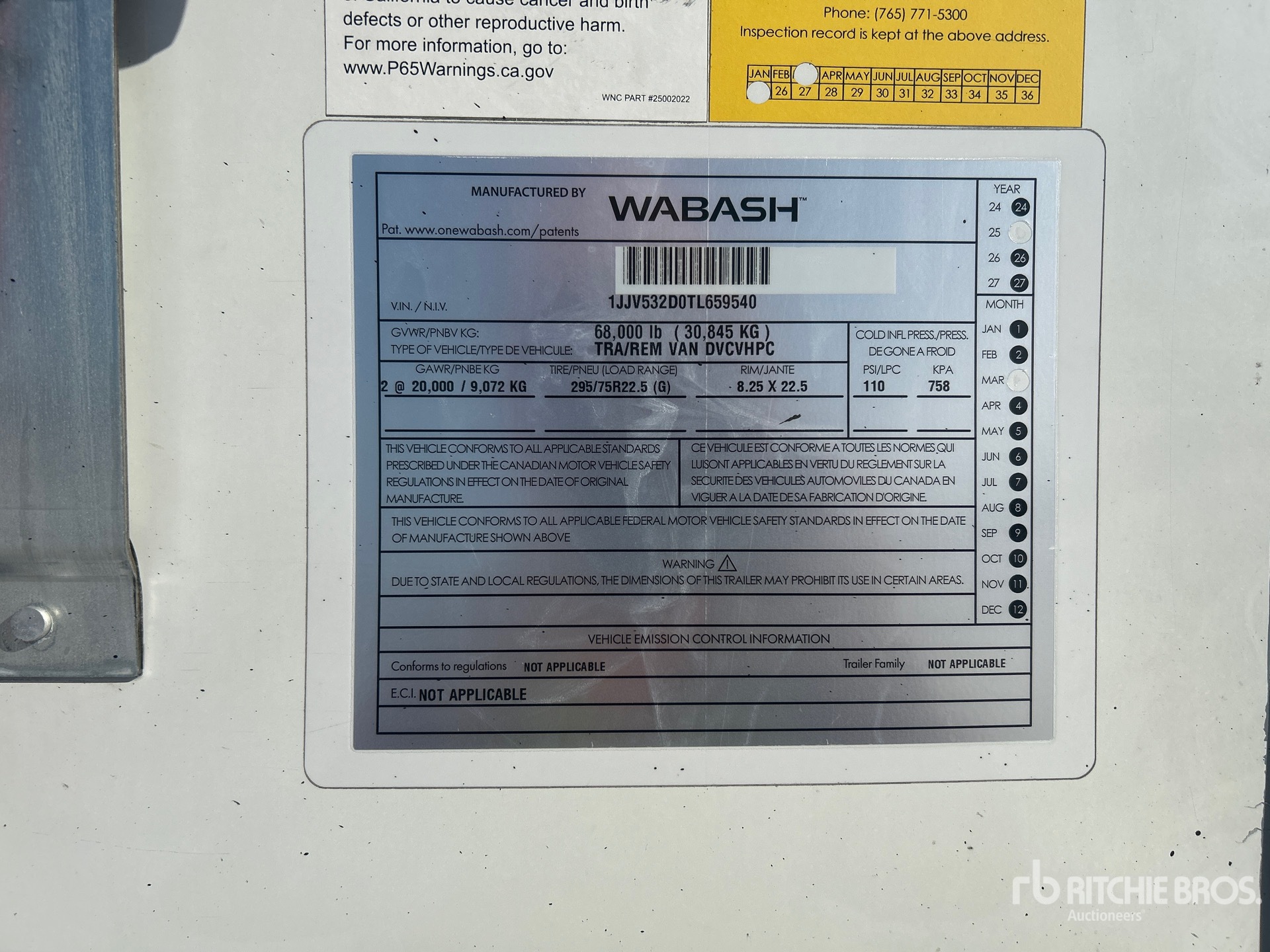 Located in Lane 32, Air Ride Sliding Suspension, Side Skirts, Hardwood Floor, Swing Door, 295/75R22.5 Tires 68000 lb GVWR