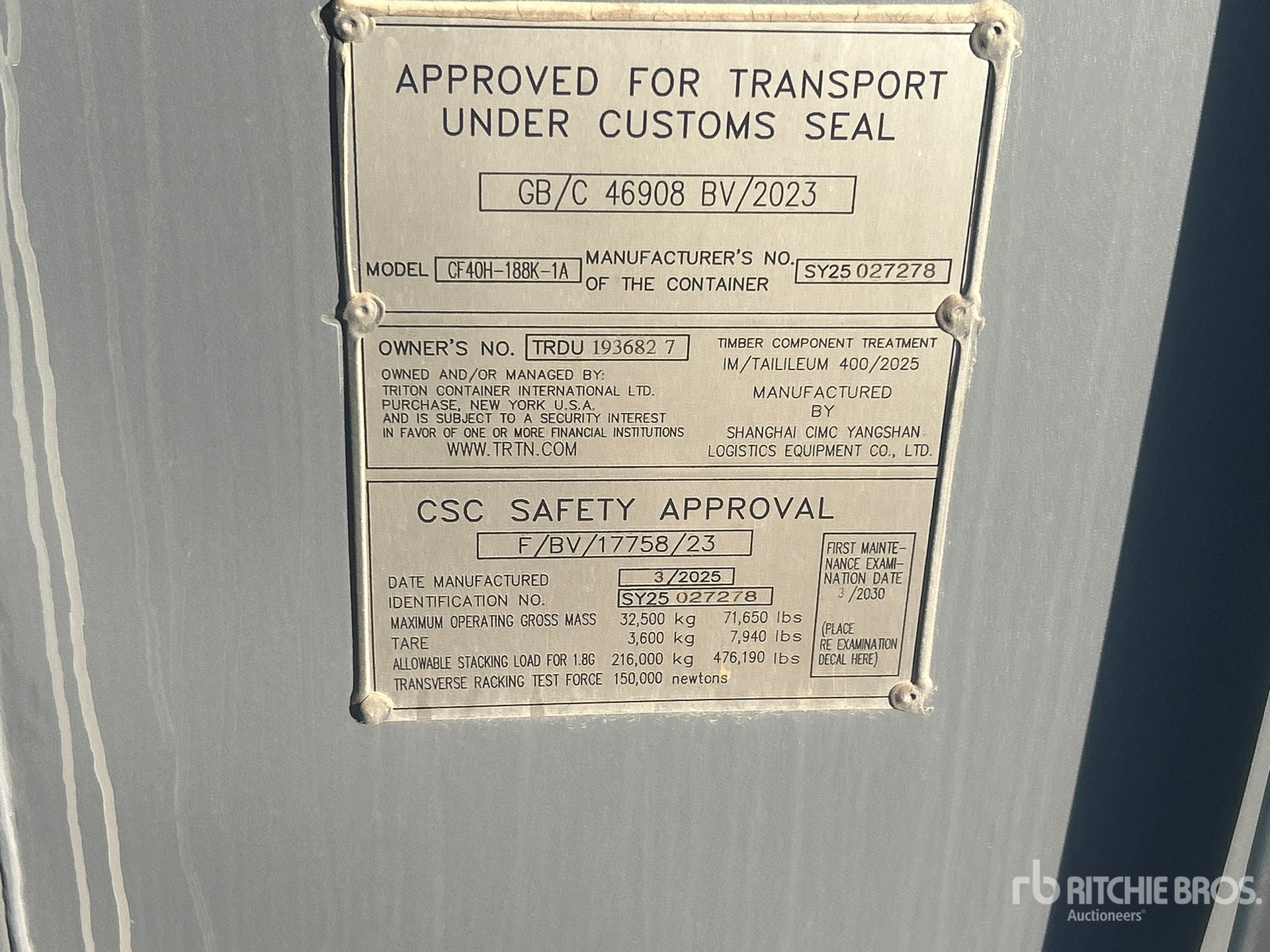 A qualified Ritchie Bros. employee collected detailed equipment information and performed functional tests on the key components of this asset. You, or a proxy, may also inspect any items on site prior to bidding on auction day.