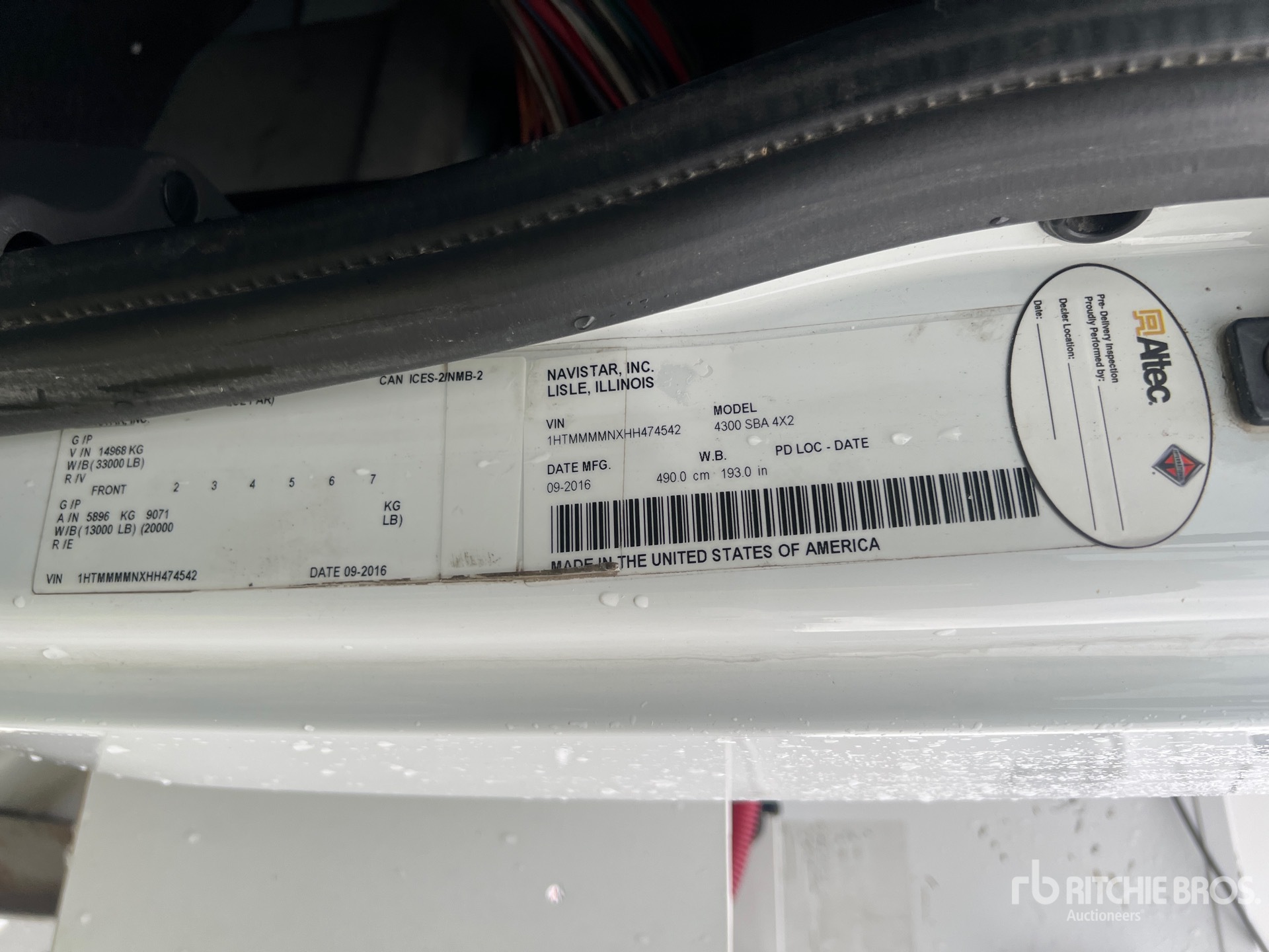 Cummins ISB 6 Cylinder 6.7 L Diesel 260 hp Engine, 2016 US EPA Label, CARB Compliant, Requires Diesel Exhaust Fluid, 11181 Engine hrs, Allison Automatic Transmission, 13000 lb Front Axle, 20000 lb Rears, 33000 lb GVWR, 11R22.5, Spring Suspension, 193 in Wheelbase, PTO, Utility Body, A-Outriggers, Rear Outriggers, 16 ft 2 in x 96 in Bed, Pintle Hitch