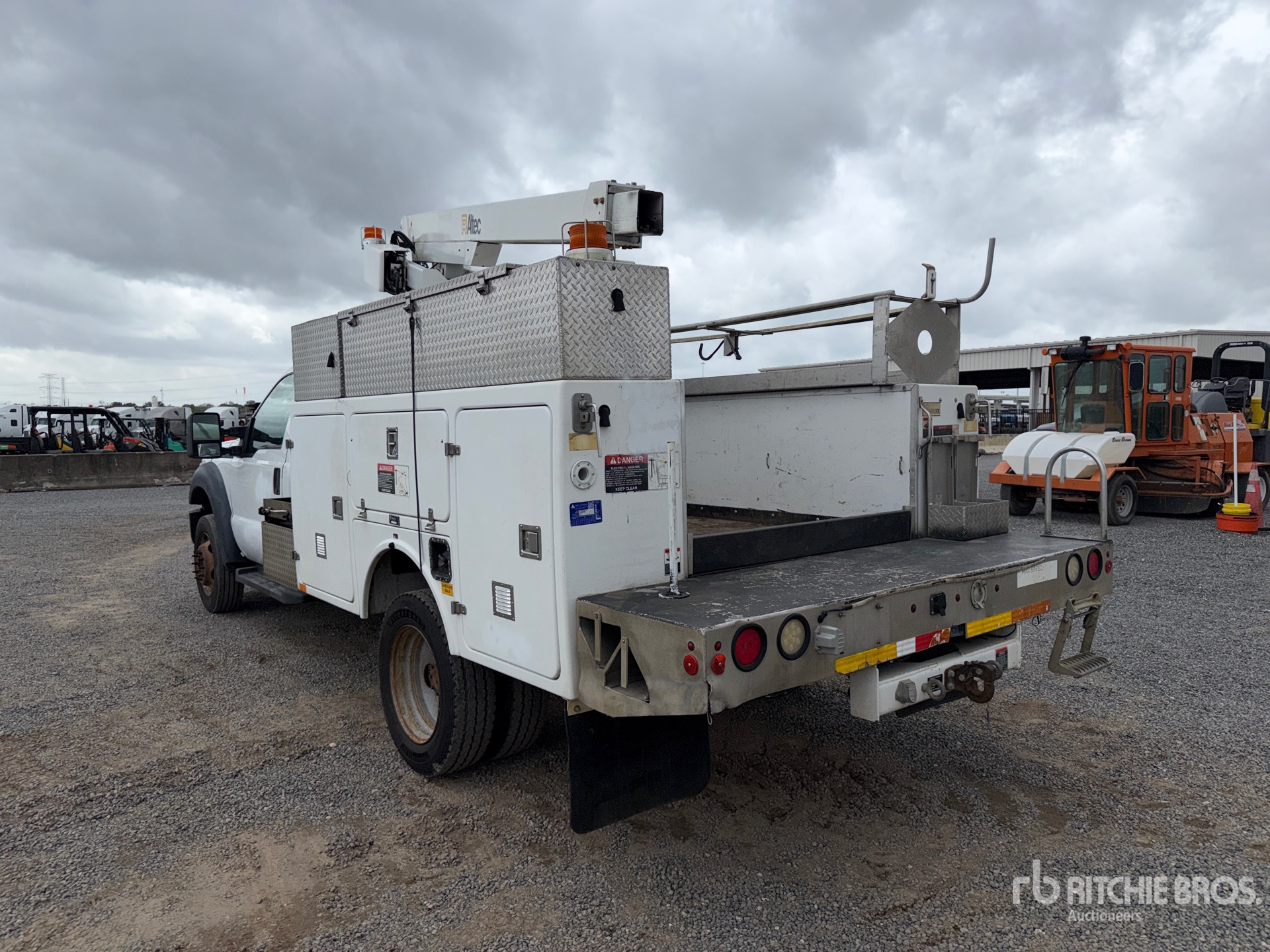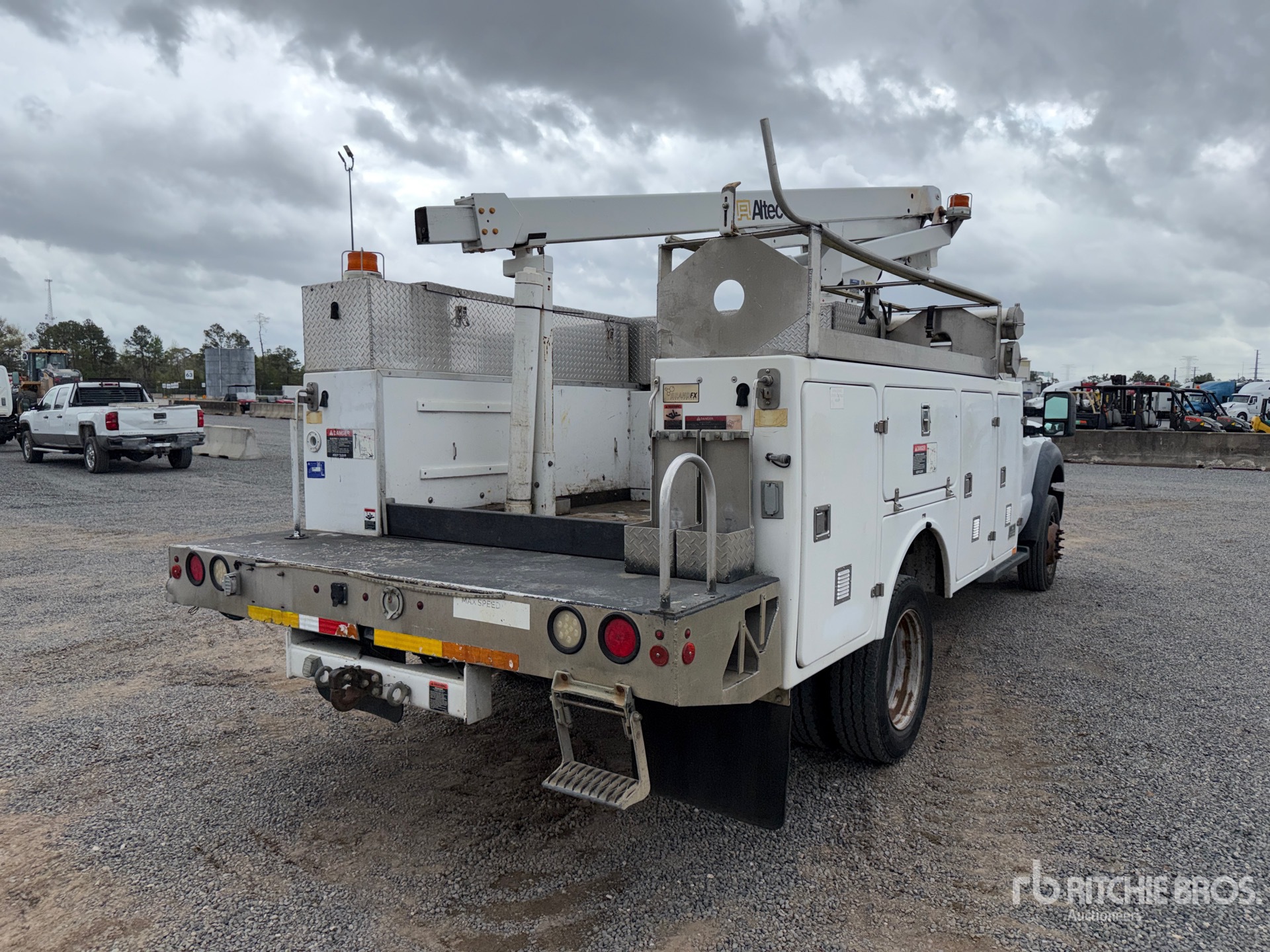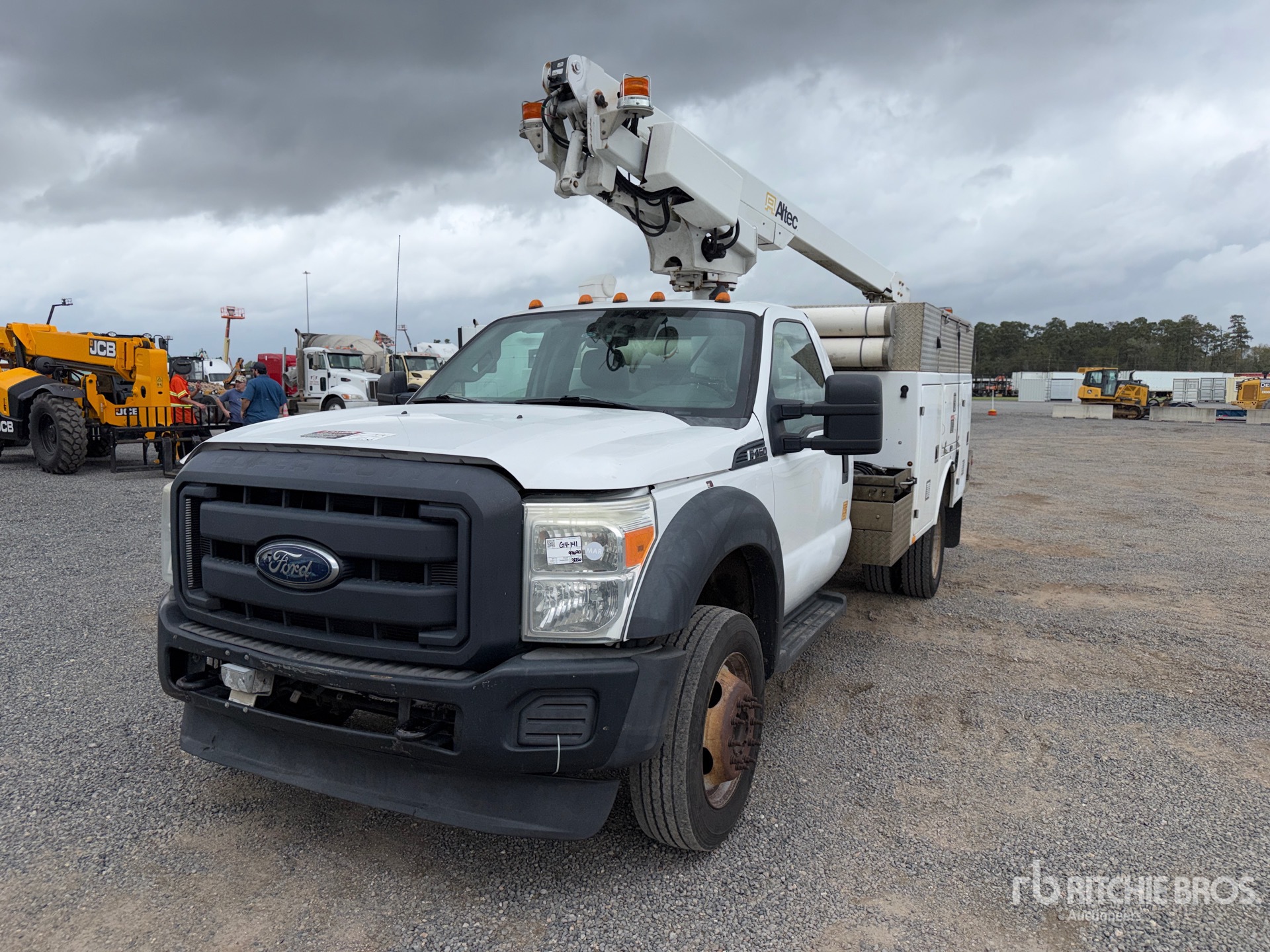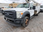 Ford V8 6.8 L Gasoline Engine, 2012 US EPA Label, Automatic Transmission, 6500 lb Front Axle, 12000 lb Rears, 16500 lb GVWR, 225/70R19.5, Spring Suspension, 164 in Wheelbase, 350 lb Capacity, Front Mounted, One-Person Telescopic Boom, Utility Body, Pintle Hitch