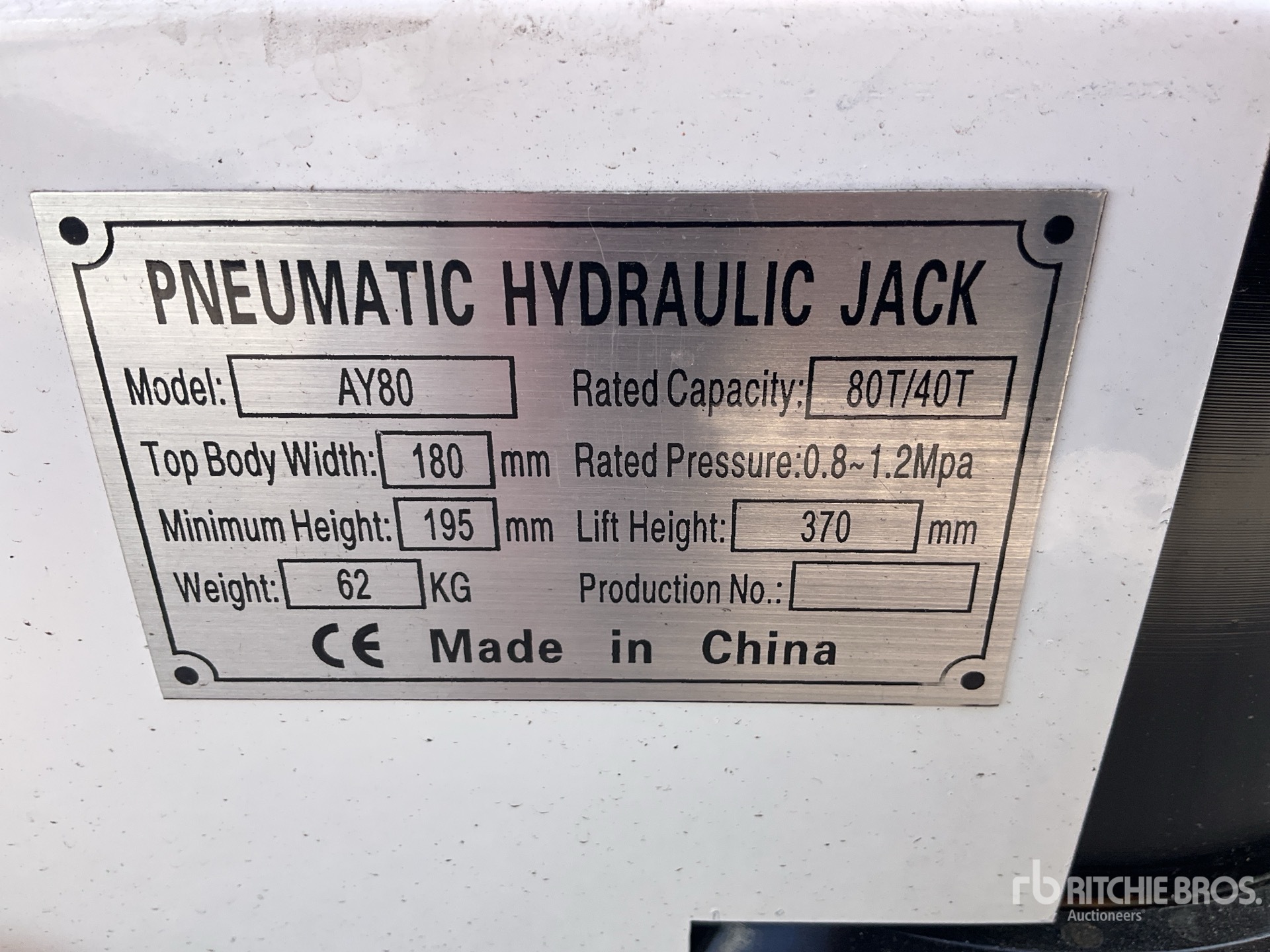 AY80 Pneumatic 80ton Jack (Unused)