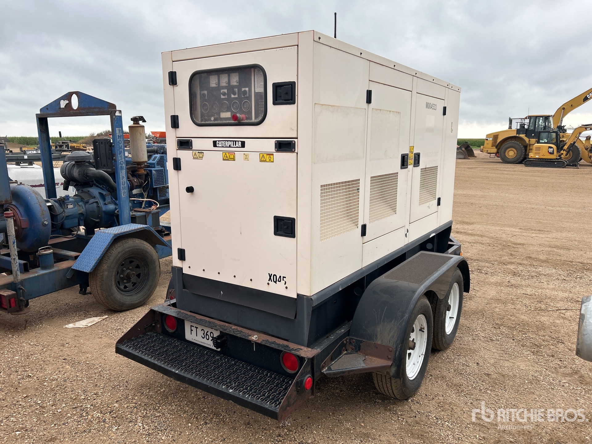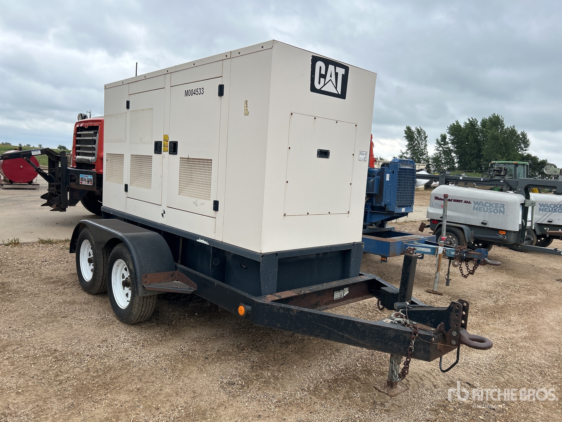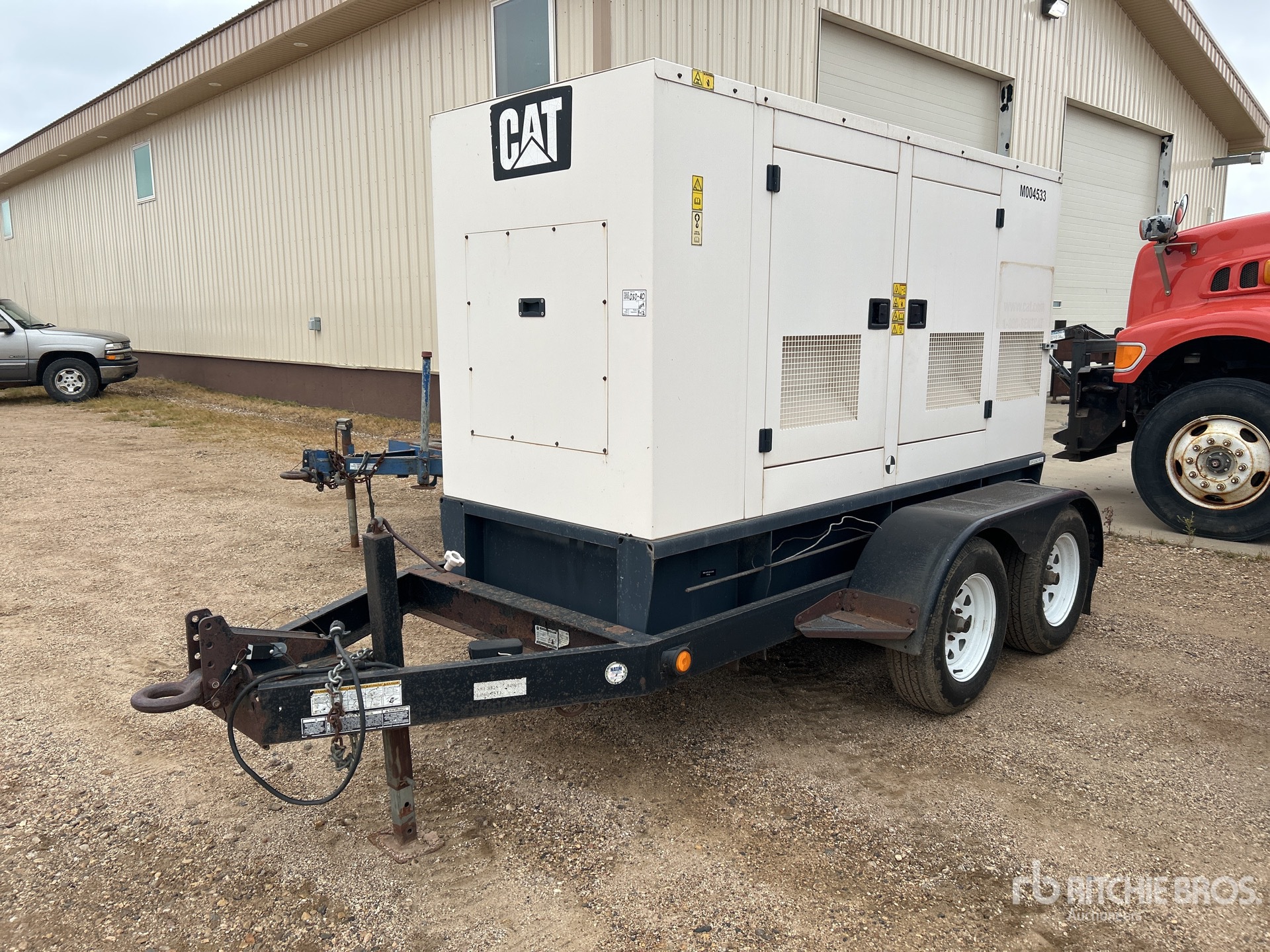 Cat 4 Cylinder Diesel Engine, 56.3 kVA/45 kW Rated 3 Phase Output, 208 V / 480 V Rated Voltage, 240 V & 120 V Receptacles, Bottom Mounted Fuel Tank, T/A Trailer, Lunette Ring, Electric Brakes
