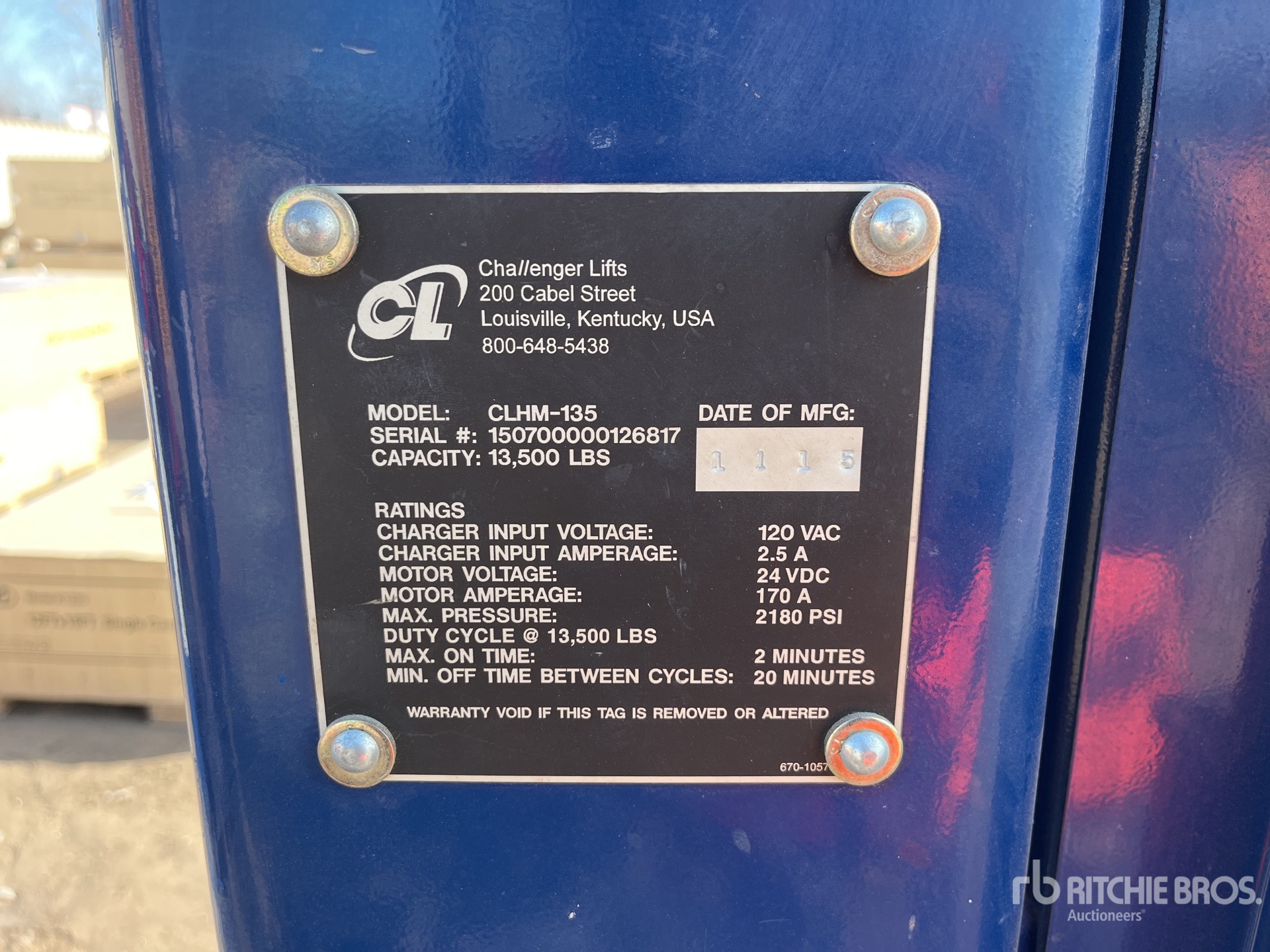 A qualified Ritchie Bros. employee collected detailed equipment information and performed functional tests on the key components of this asset. You, or a proxy, may also inspect any items on site prior to bidding on auction day.