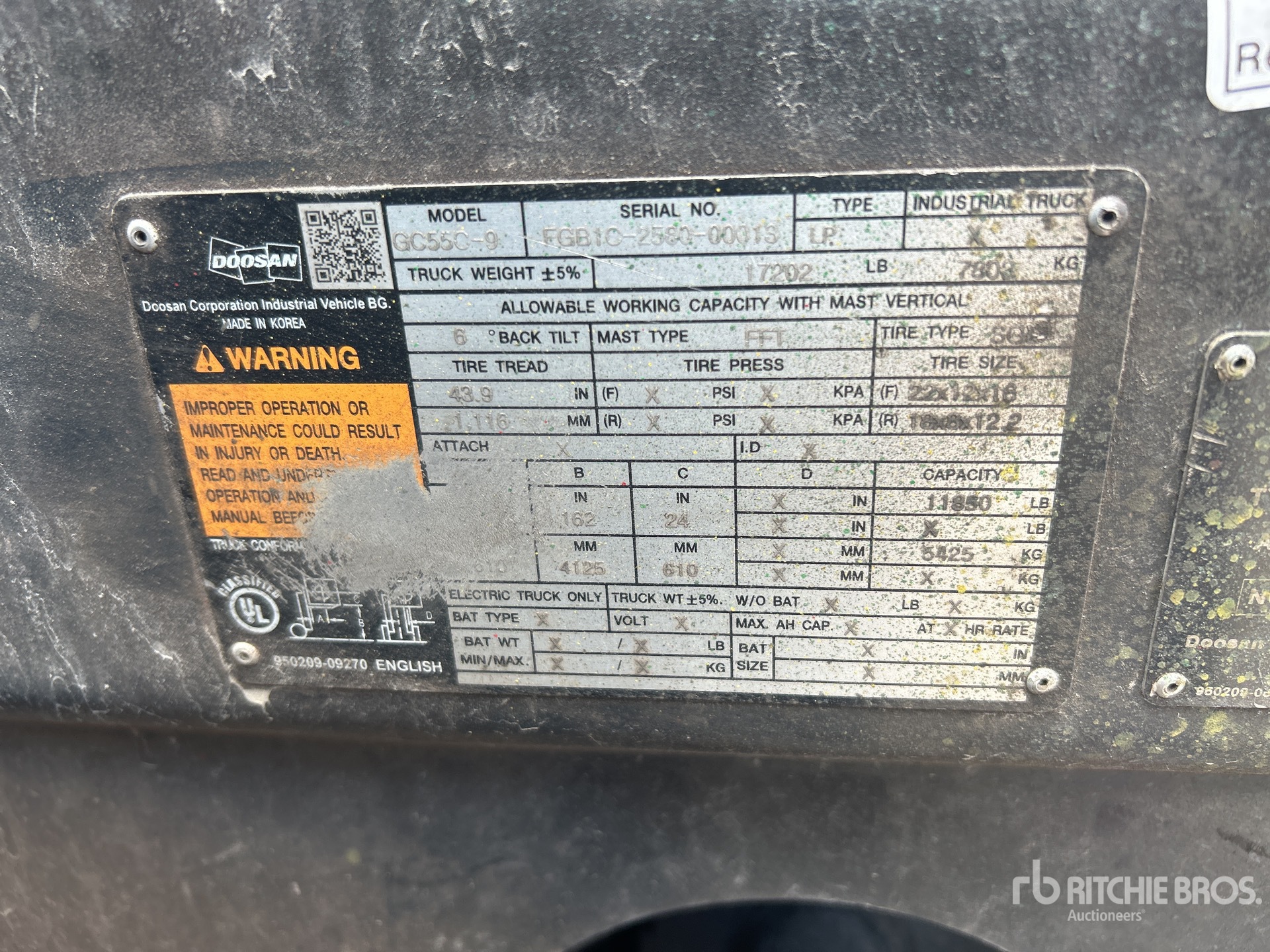 The detailed equipment information is limited in scope, and Ritchie Bros. Auctioneers has not inspected any aspects or components of the equipment other than those expressly set forth herein. Unless expressly stated, we make no representations or warranties, express or implied, concerning the equipment or its components, including without limitation any representations or warranties concerning functionality, conformity or compliance with any safety standard or requirement of any applicable authority or regulatory body, fitness for any particular purpose, or merchantability. You are strongly advised to perform your own detailed inspection of the equipment prior to bidding.