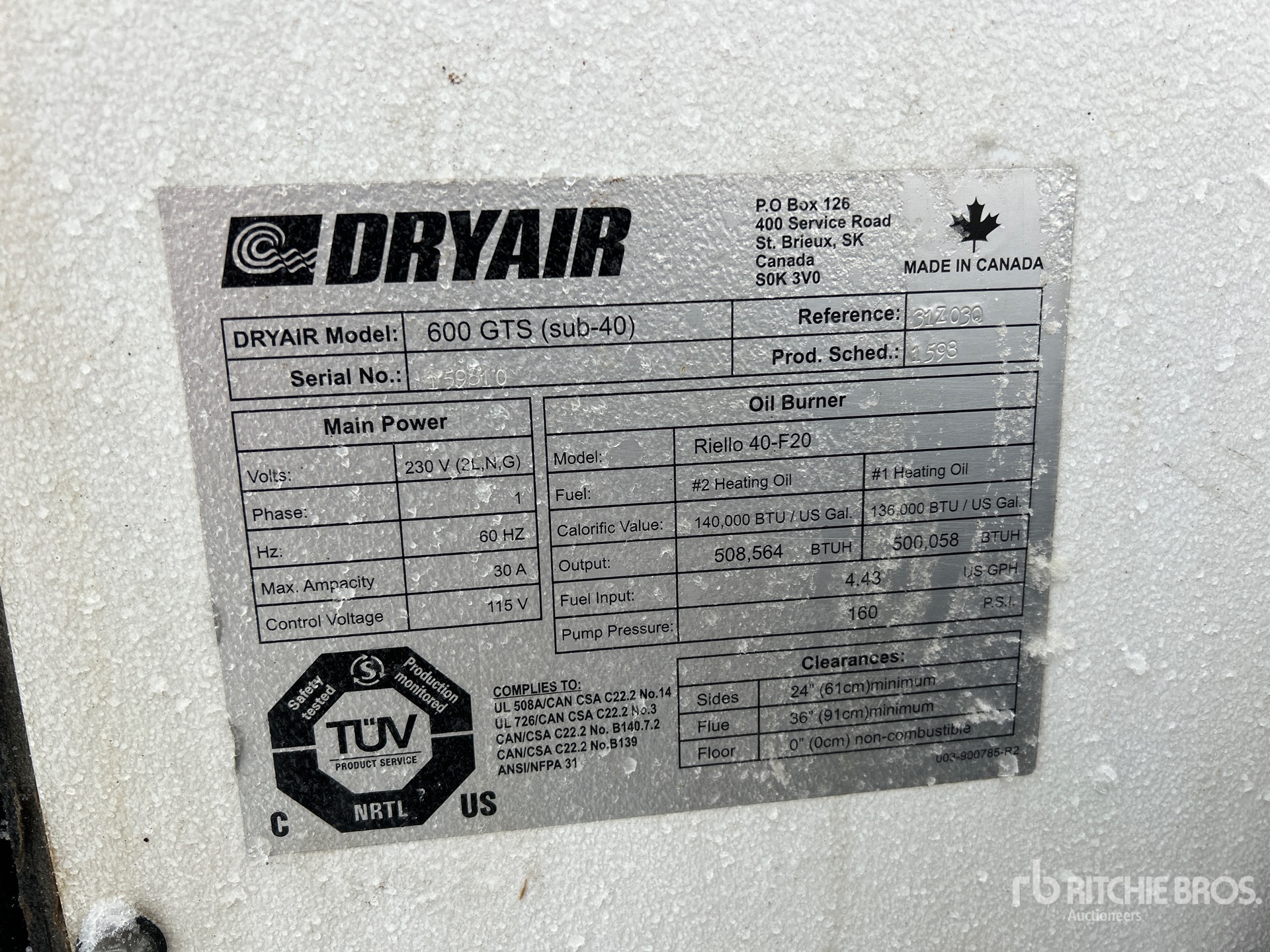 A qualified Ritchie Bros. employee collected detailed equipment information and performed functional tests on the key components of this asset. You, or a proxy, may also inspect any items on site prior to bidding on auction day.