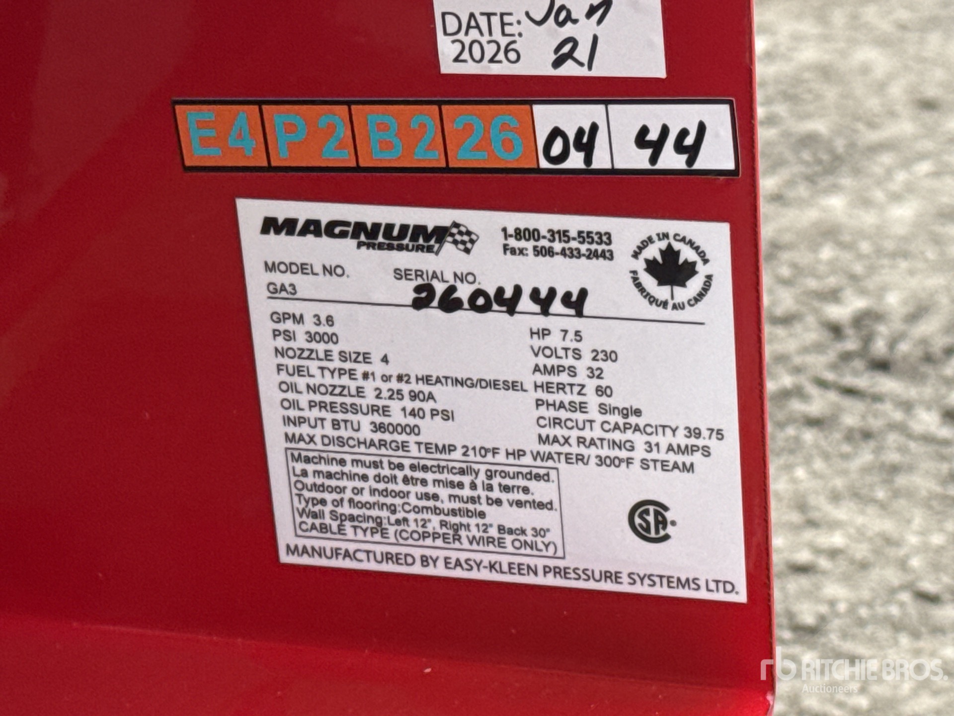 4000 psi Rating, Water Heater, Hose, Spray Wand, Electric Operated