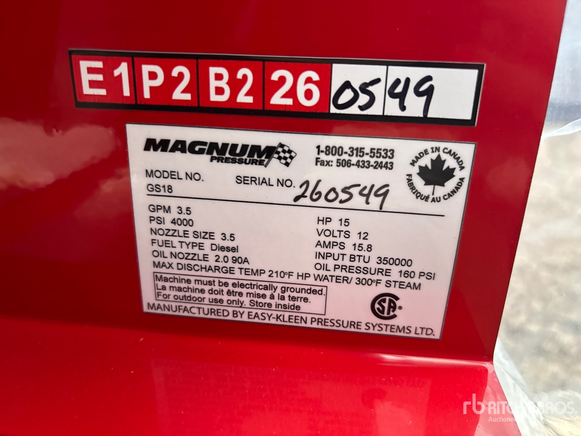 A qualified Ritchie Bros. employee collected detailed equipment information and performed functional tests on the key components of this asset. You, or a proxy, may also inspect any items on site prior to bidding on auction day.