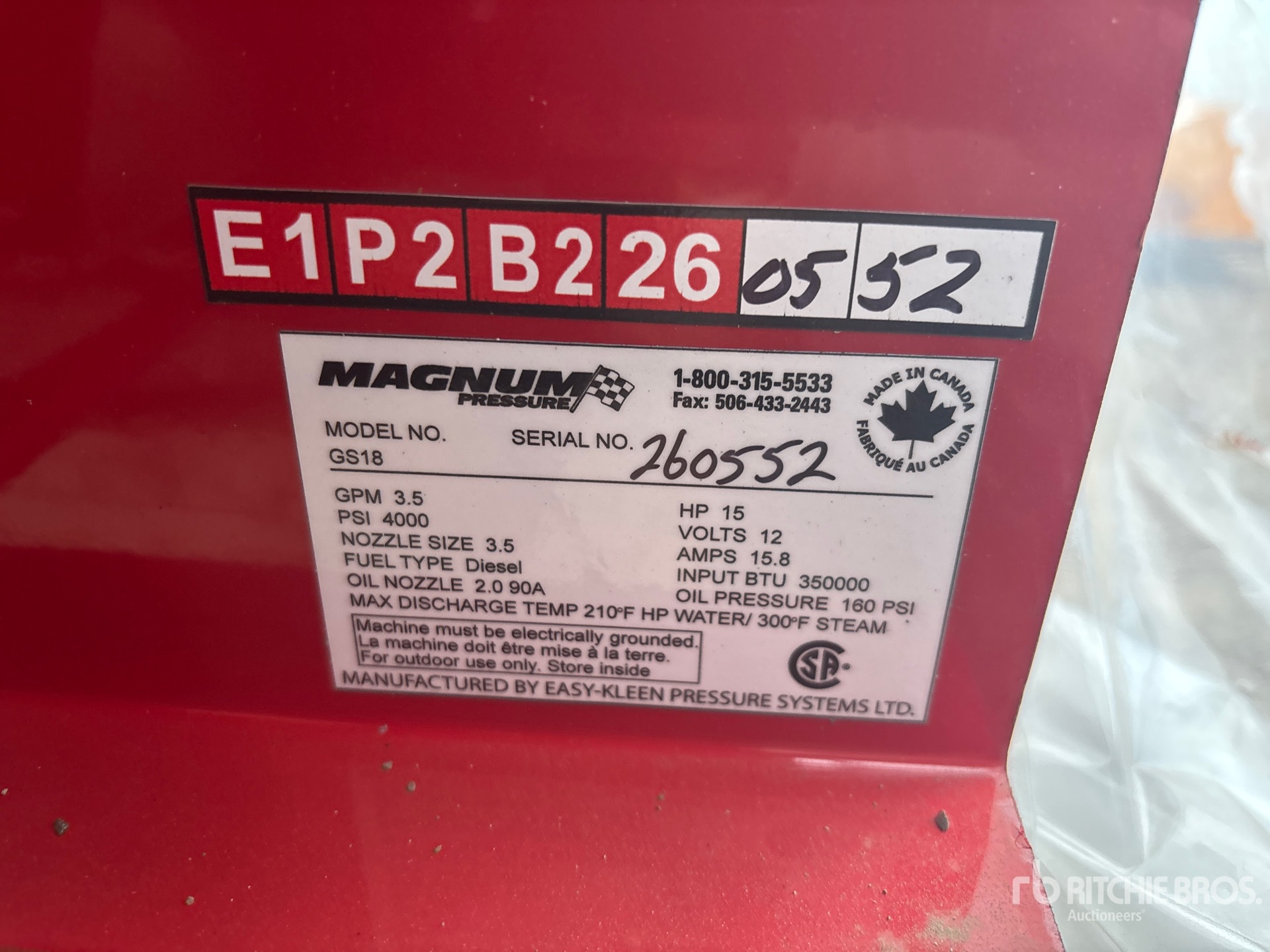 A qualified Ritchie Bros. employee collected detailed equipment information and performed functional tests on the key components of this asset. You, or a proxy, may also inspect any items on site prior to bidding on auction day.