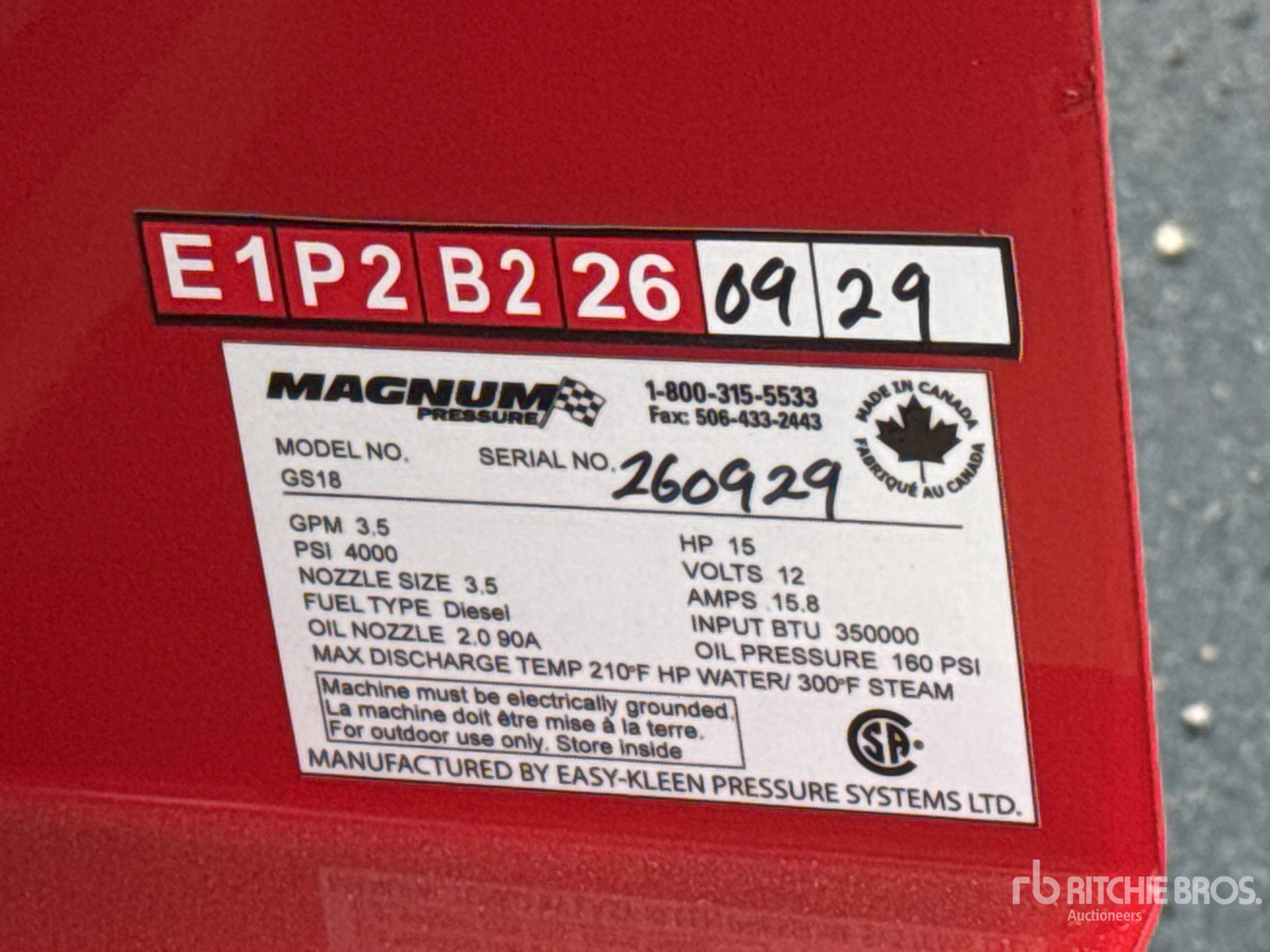 The detailed equipment information is limited in scope, and Ritchie Bros. Auctioneers has not inspected any aspects or components of the equipment other than those expressly set forth herein. Unless expressly stated, we make no representations or warranties, express or implied, concerning the equipment or its components, including without limitation any representations or warranties concerning functionality, conformity or compliance with any safety standard or requirement of any applicable authority or regulatory body, fitness for any particular purpose, or merchantability. You are strongly advised to perform your own detailed inspection of the equipment prior to bidding.