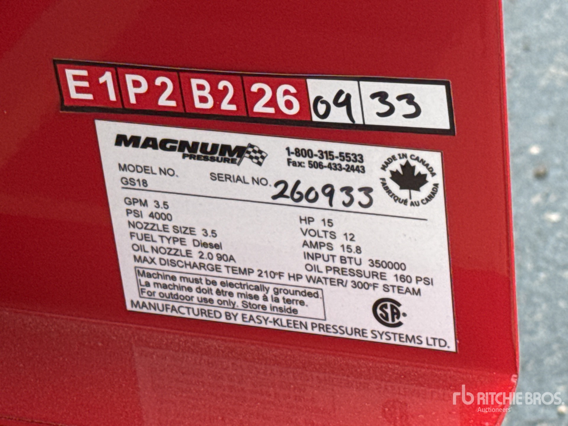 The detailed equipment information is limited in scope, and Ritchie Bros. Auctioneers has not inspected any aspects or components of the equipment other than those expressly set forth herein. Unless expressly stated, we make no representations or warranties, express or implied, concerning the equipment or its components, including without limitation any representations or warranties concerning functionality, conformity or compliance with any safety standard or requirement of any applicable authority or regulatory body, fitness for any particular purpose, or merchantability. You are strongly advised to perform your own detailed inspection of the equipment prior to bidding.