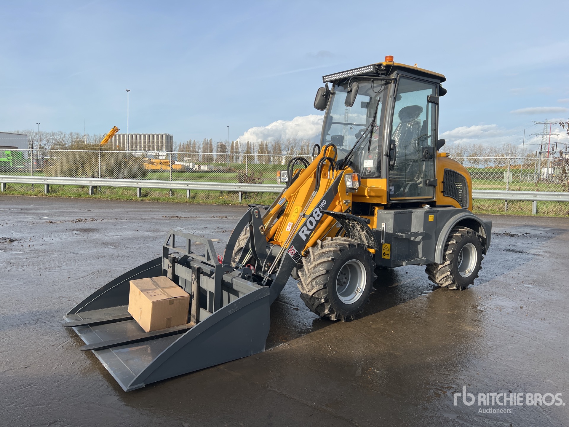 Enclosed Cab, Rear View Camera, Auxiliary Hydraulics, Hydraulic Coupler, 1600 mm Bucket, Forks, 31x15.5-15 Tires