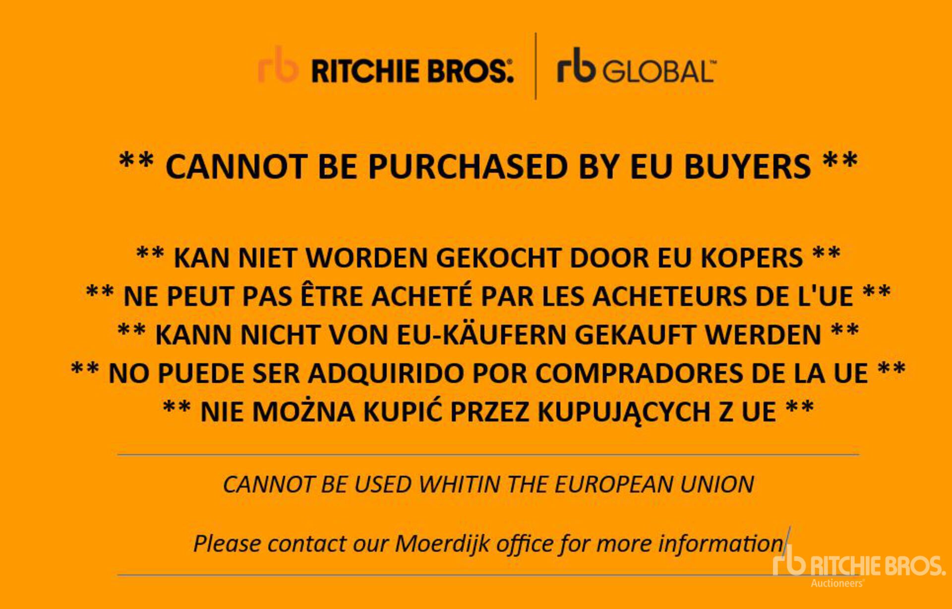 ** UNIT COMES WITH STAGE 3 ENGINE - CANNOT BE USED IN THE EU ** NON DUTY FREE CIRCULATION EU ** ADDITIONAL INFORMATION AVAILABLE ** The closing times of lots 284, 285 and 286 are tied together. If a bid is received, then a time-extension will be applied to all lots. Once the time closes, the highest bidder on each piece will be the winner **