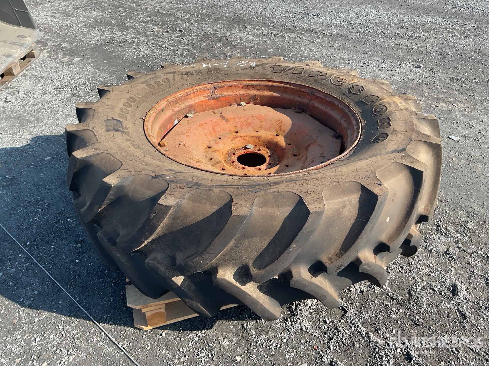 Firestone Radial 8000 520/70R28 Tire on Rim, 8 Hole