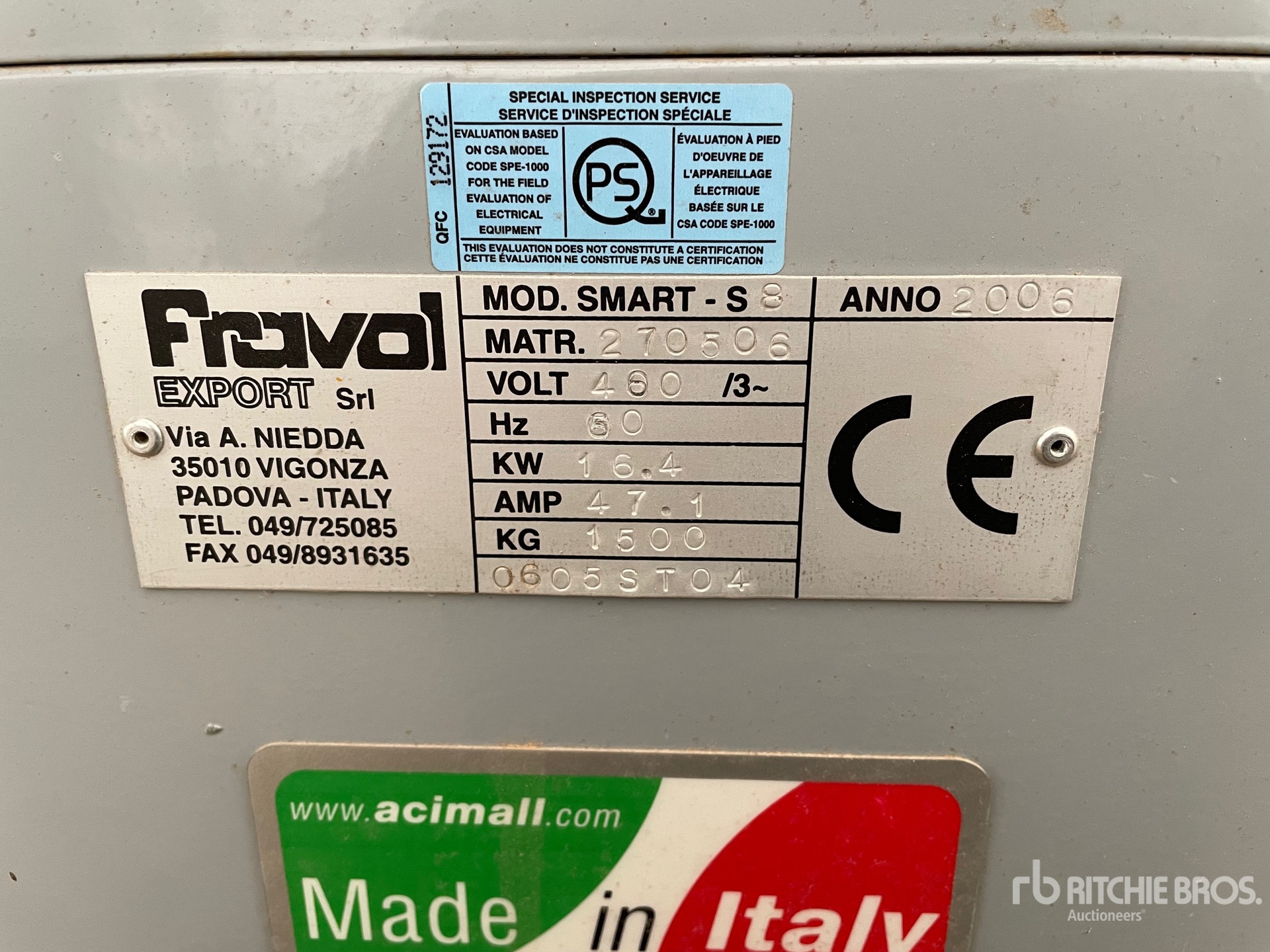 A qualified Ritchie Bros. employee collected detailed equipment information and performed functional tests on the key components of this asset. You, or a proxy, may also inspect any items on site prior to bidding on auction day.