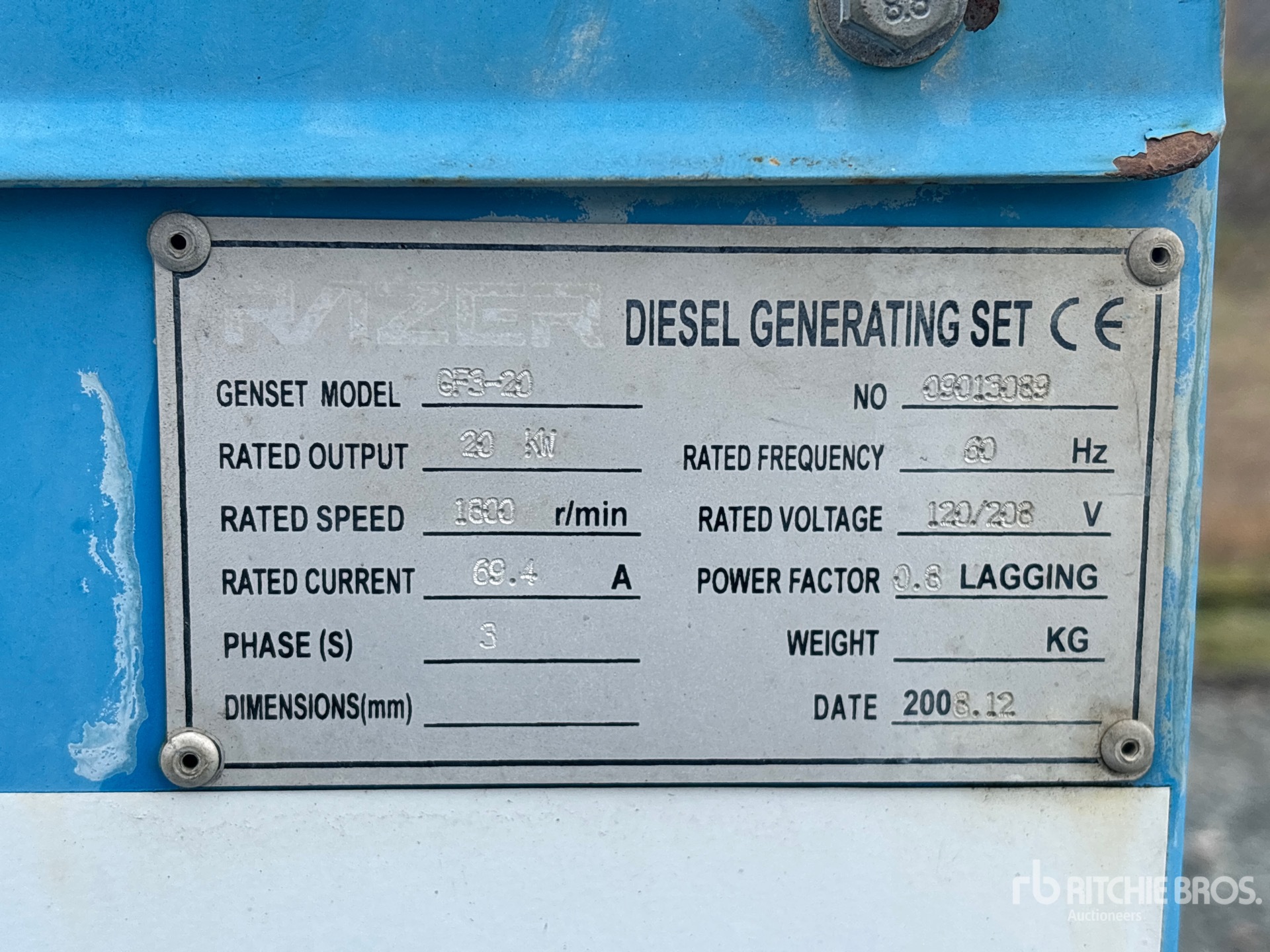 4 Cylinder Diesel Engine, /20 kW Rated 3 Phase Output, 120 V / 208 V Rated Voltage