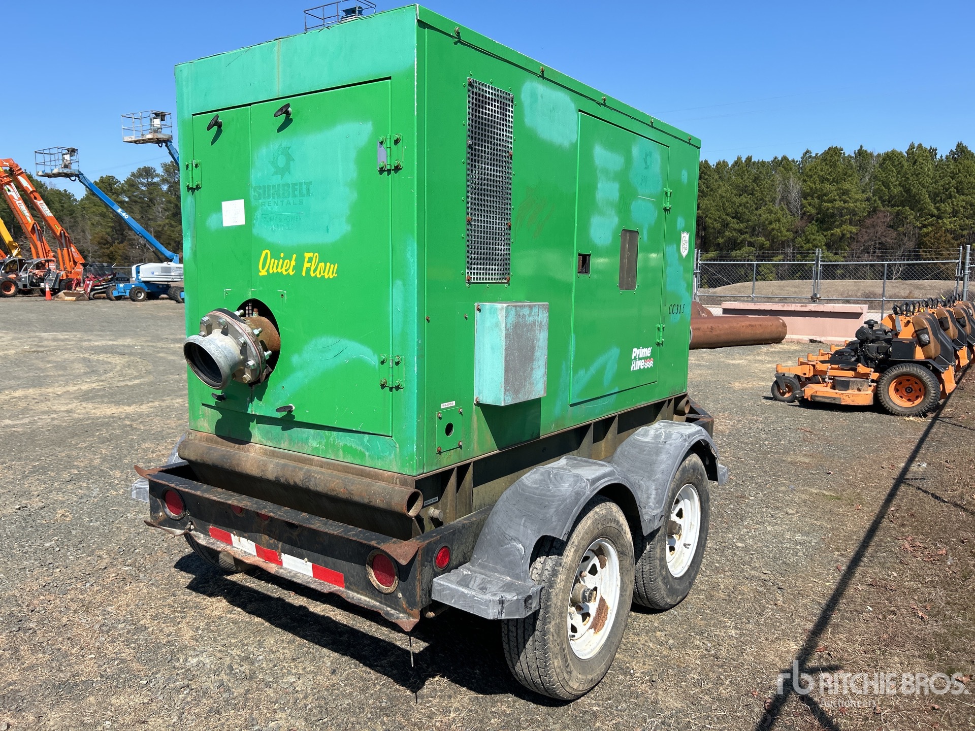 7 in Intake, 6 in Discharge, Centrifugal Water Pump, 2008 US EPA Label, John Deere 4 Cylinder 60 kW 4.5 L Diesel Engine, Lunette Ring Carrier Trailer, Hydraulic Brakes