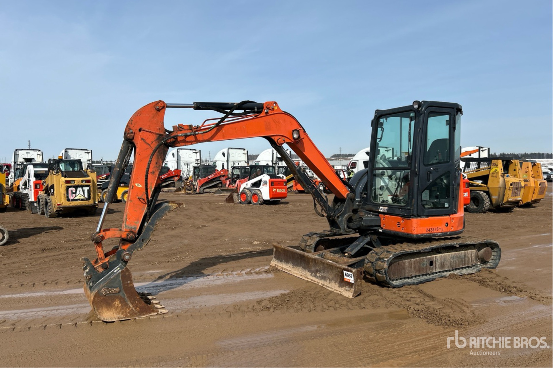 Enclosed Cab, Air Conditioner, Control Pattern Changer, 2014 US EPA Label, CARB Compliant, Swing Boom, 4 ft 6 in Stick, Backfill Blade, 15.5 in Rubber Tracks, Manual Quick Coupler, 30 in Digging Bucket, Hydraulic Thumb