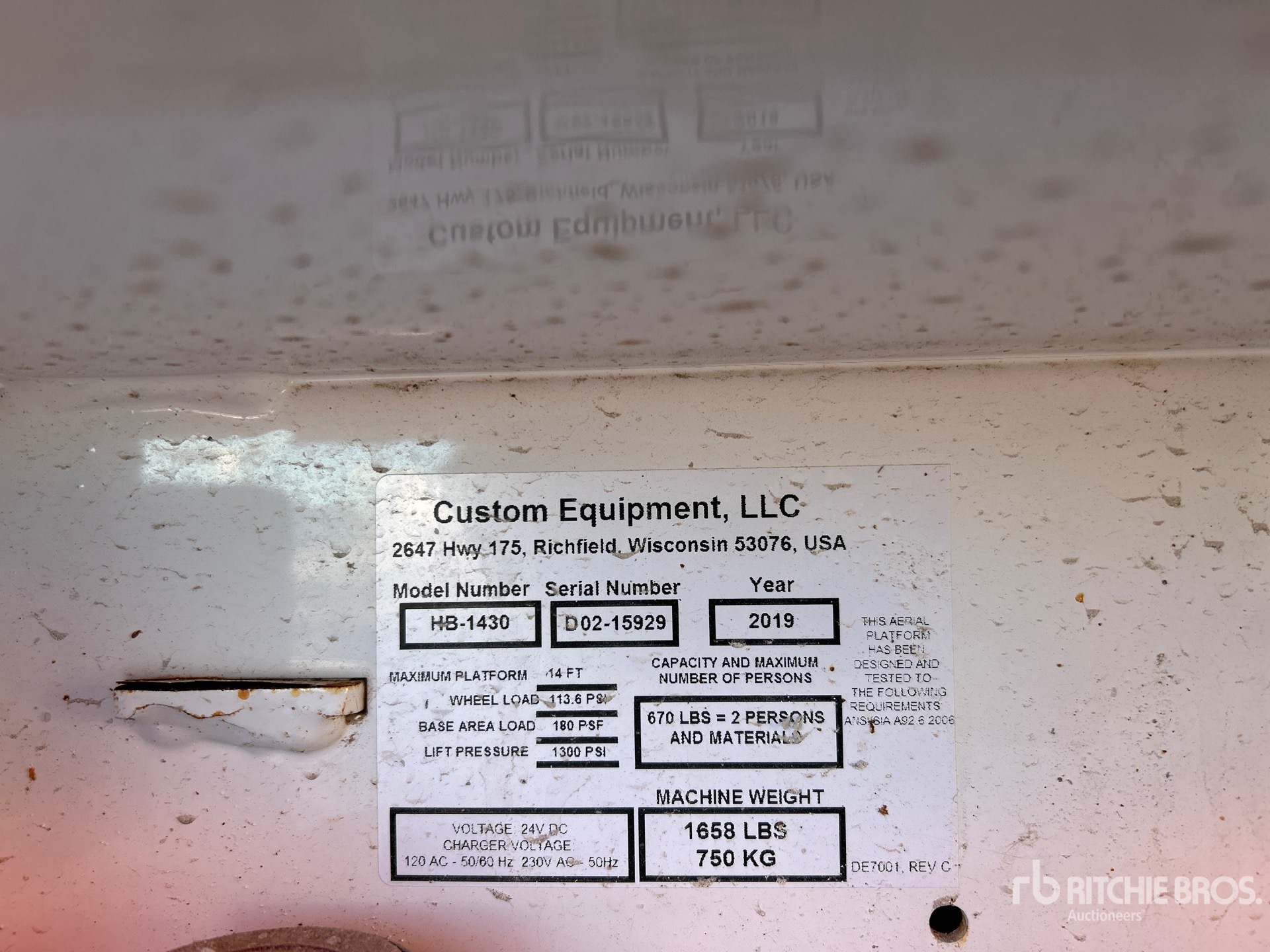 A qualified Ritchie Bros. employee collected detailed equipment information and performed functional tests on the key components of this asset. You, or a proxy, may also inspect any items on site prior to bidding on auction day.
