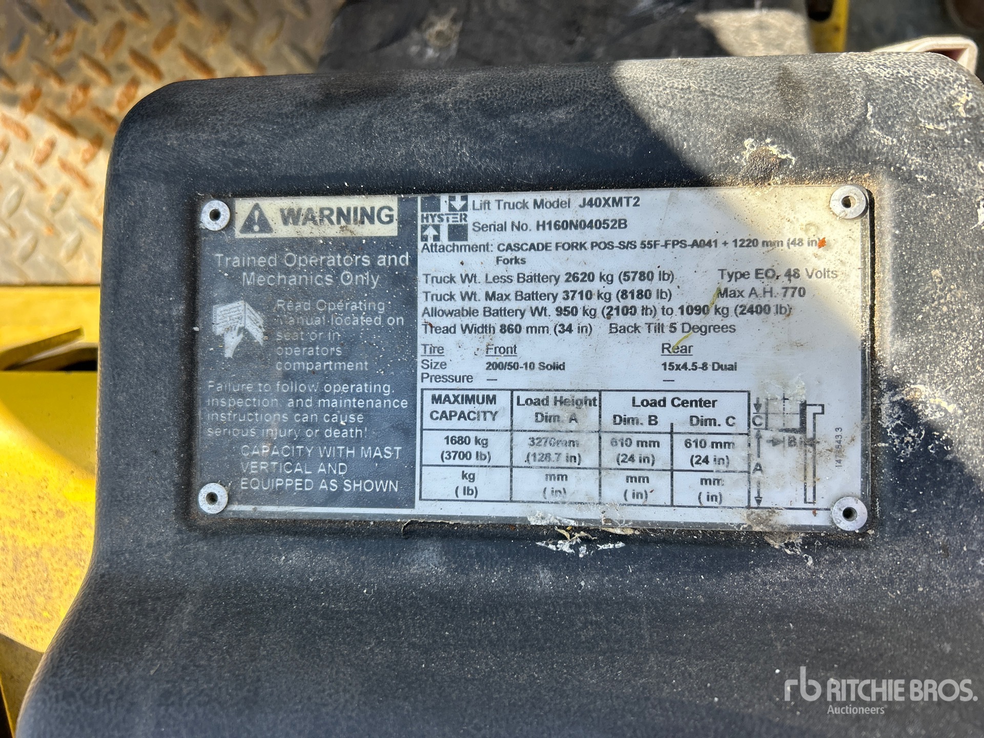 The detailed equipment information is limited in scope, and Ritchie Bros. Auctioneers has not inspected any aspects or components of the equipment other than those expressly set forth herein. Unless expressly stated, we make no representations or warranties, express or implied, concerning the equipment or its components, including without limitation any representations or warranties concerning functionality, conformity or compliance with any safety standard or requirement of any applicable authority or regulatory body, fitness for any particular purpose, or merchantability. You are strongly advised to perform your own detailed inspection of the equipment prior to bidding.