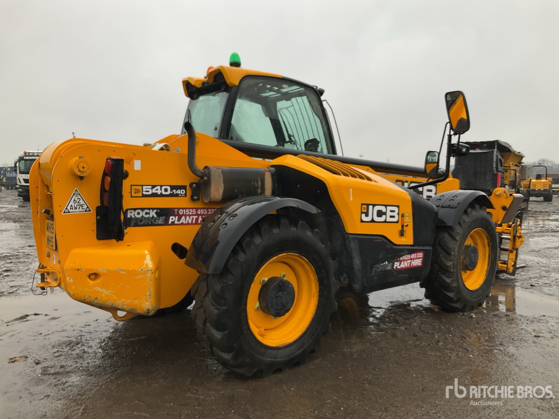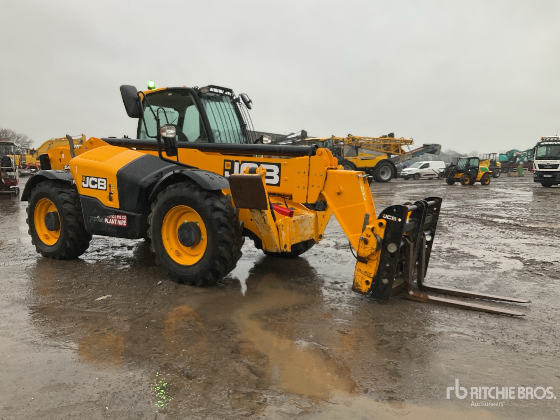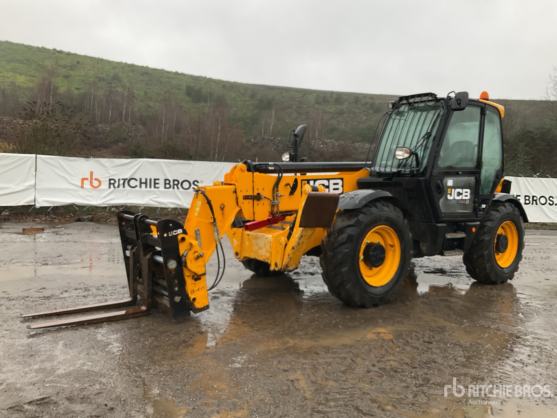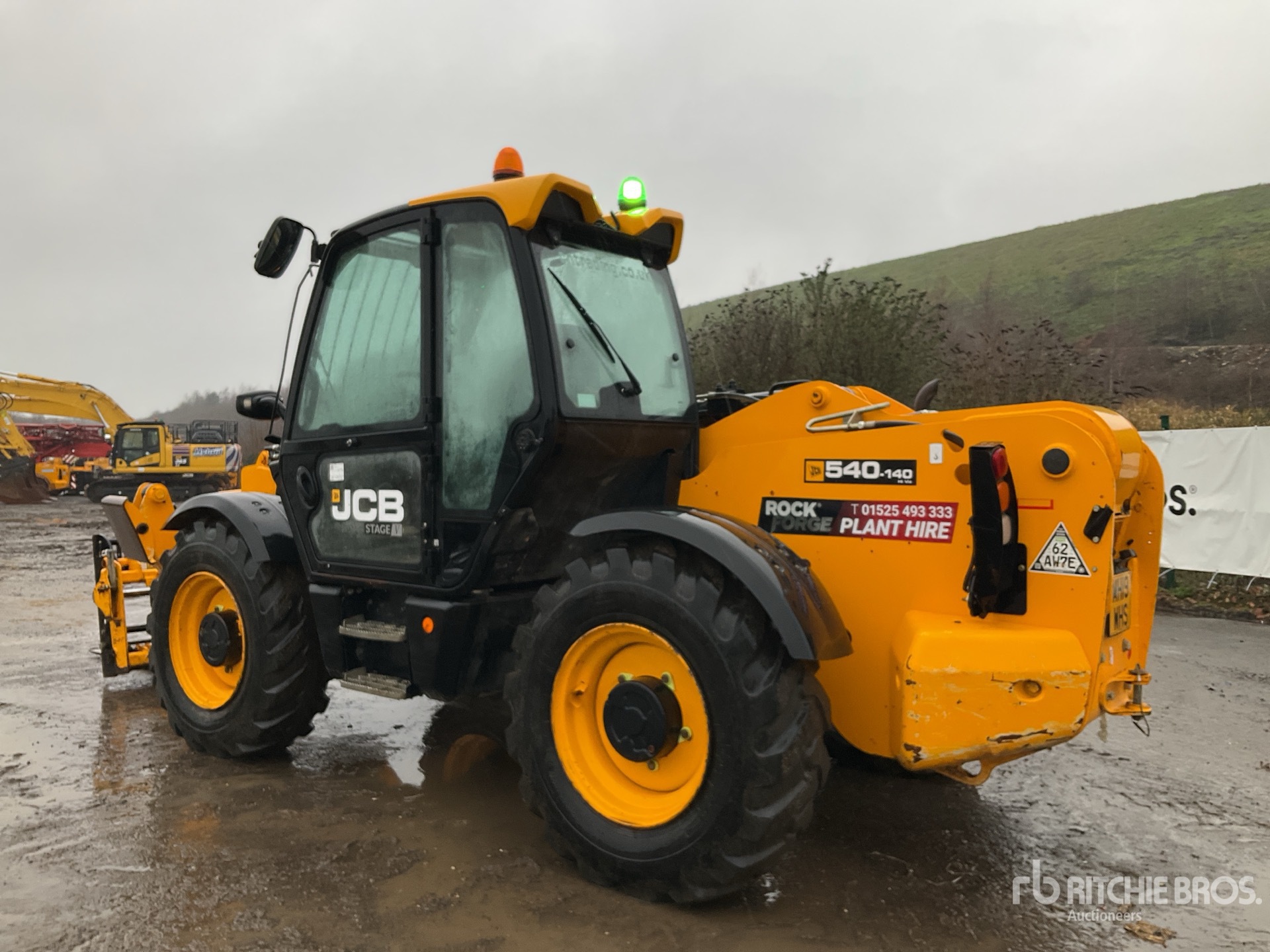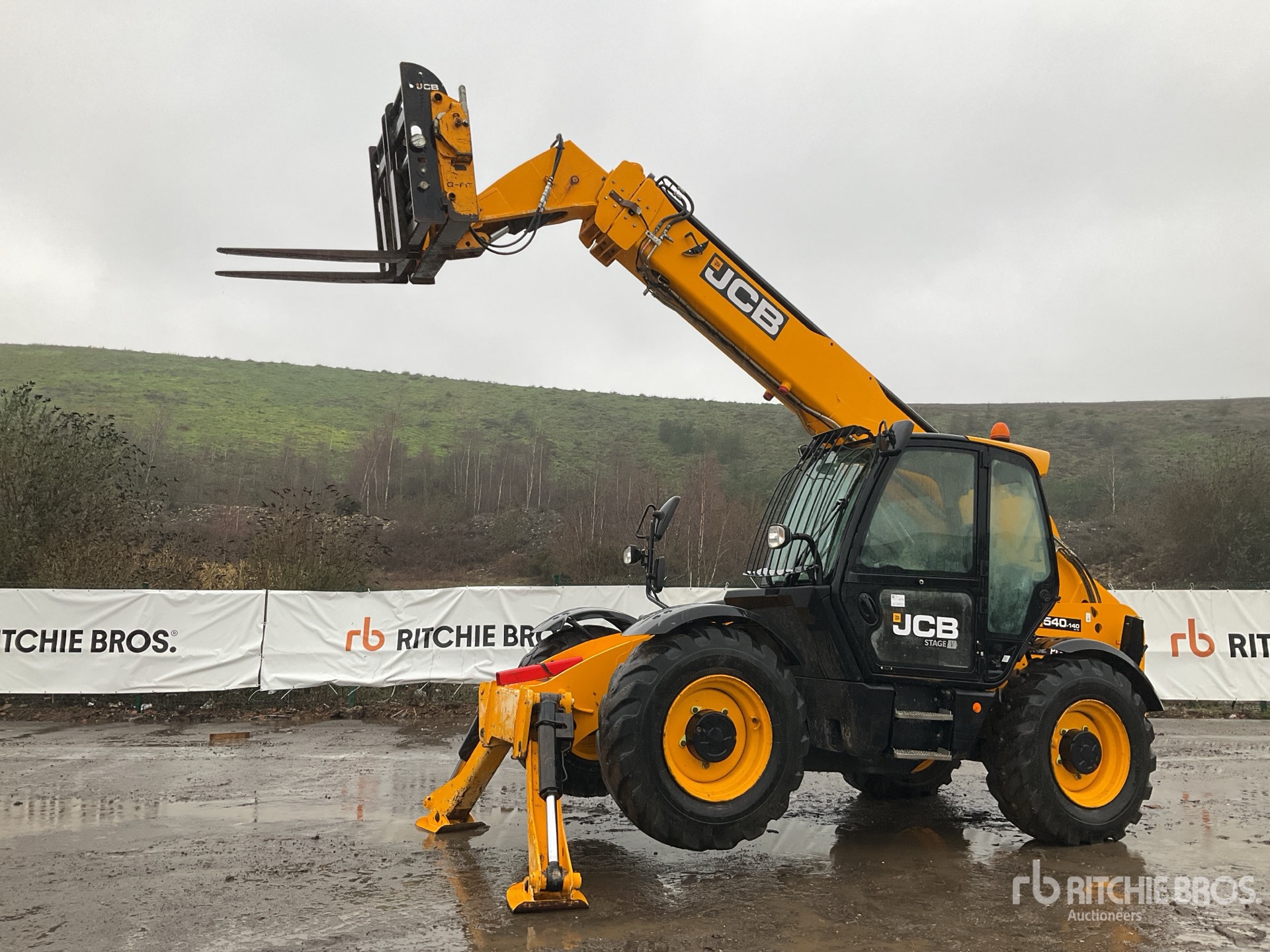 Enclosed Cab, Air Conditioner, Rear View Camera, Load Moment Indicator, 13.78 m Max Lift Height, 4000 kg Max Lift Capacity, 1050 mm Forks, Fork Positioner, Manual Coupler, Outriggers, Auxiliary Hydraulic Plumbing, 15.5-25 Tires