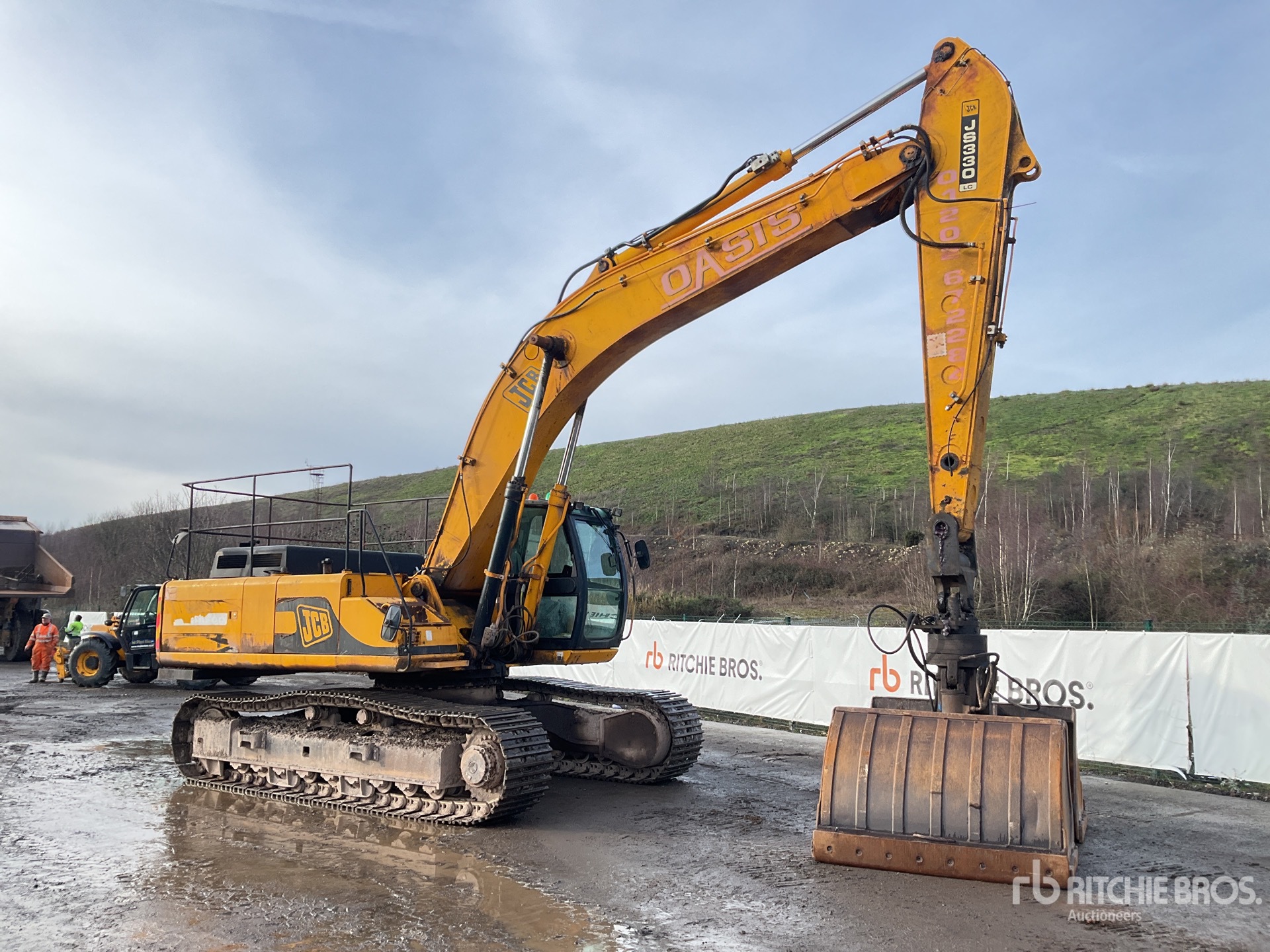 Air Conditioner, 2005 US EPA Label, 3200 mm Stick, Auxiliary Hydraulic Plumbing, Stick Check Valve, Boom Check Valves, 600 mm Triple Grouser Track Shoes, clamshell ARDEN BENNE 2501 rotating Clamshell, Clamshell Bucket. BUT MAIN PIN STICK TO CLAMSHELL NOT INCLUDE