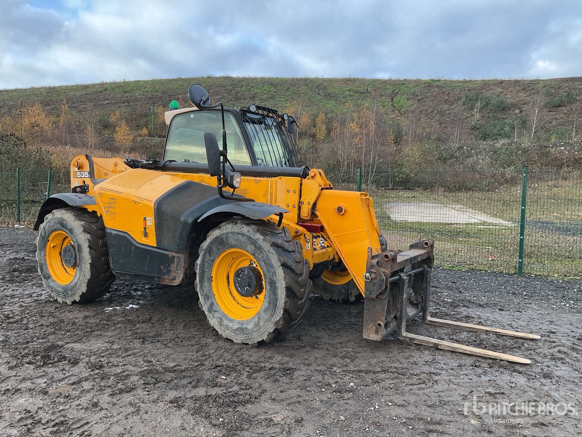 Enclosed Cab, Rear View Camera, Load Moment Indicator, 9.5 m Max Lift Height, 3500 kg Max Lift Capacity, 2016 US EPA Label, 1060 mm Forks, Manual Coupler, Auxiliary Hydraulic Plumbing, 15.5/80-24 Tires