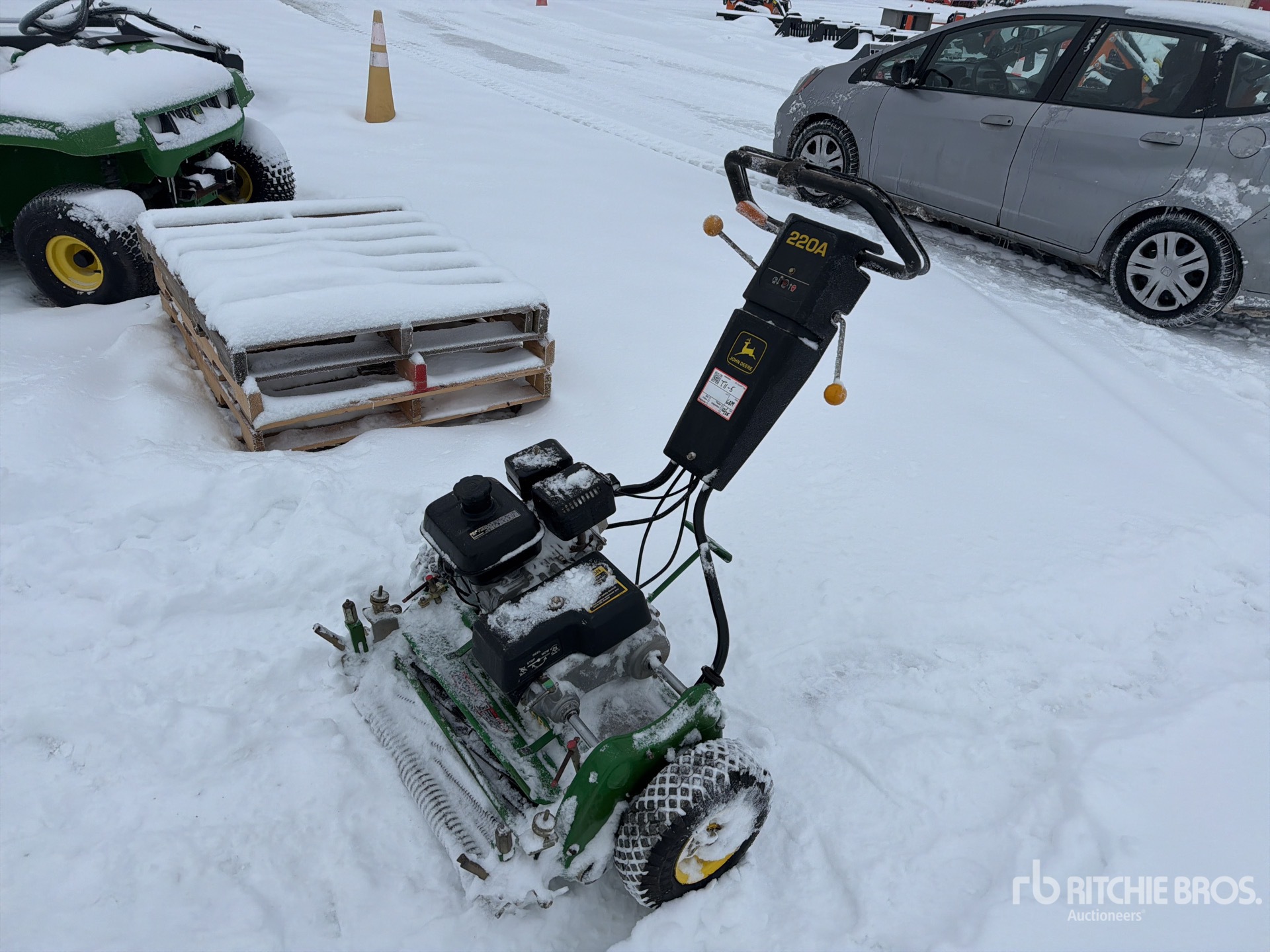 CVT, Tier 4, 1995 US EPA Label, Positive Air Shutoff, 4.10x3.50-6 Front Tires, John Deere 220a 22 in Trailed Mower, Seller Comment: "Mower has 11 Blade Reels"