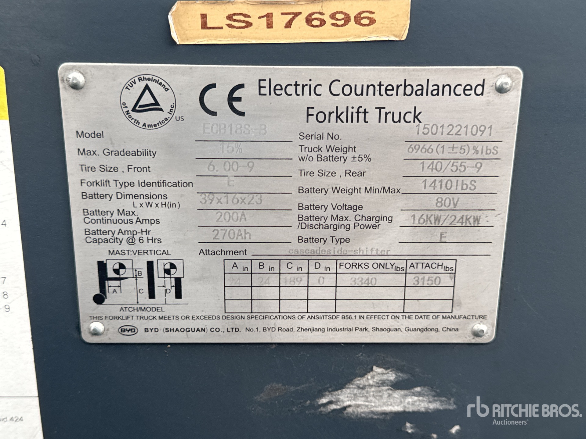 The detailed equipment information is limited in scope, and Ritchie Bros. Auctioneers has not inspected any aspects or components of the equipment other than those expressly set forth herein. Unless expressly stated, we make no representations or warranties, express or implied, concerning the equipment or its components, including without limitation any representations or warranties concerning functionality, conformity or compliance with any safety standard or requirement of any applicable authority or regulatory body, fitness for any particular purpose, or merchantability. You are strongly advised to perform your own detailed inspection of the equipment prior to bidding.