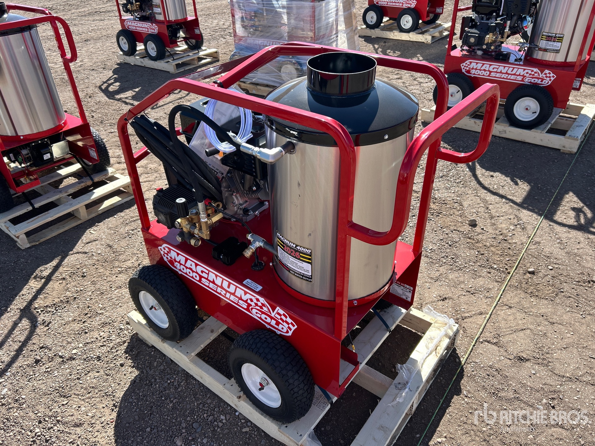 4000 psi Rating, Water Heater, 3.5 gal Water Supply, Hose, Spray Wand, 1 Cylinder Gasoline Engine, Product images displayed are stock photos. Item is new/unused.